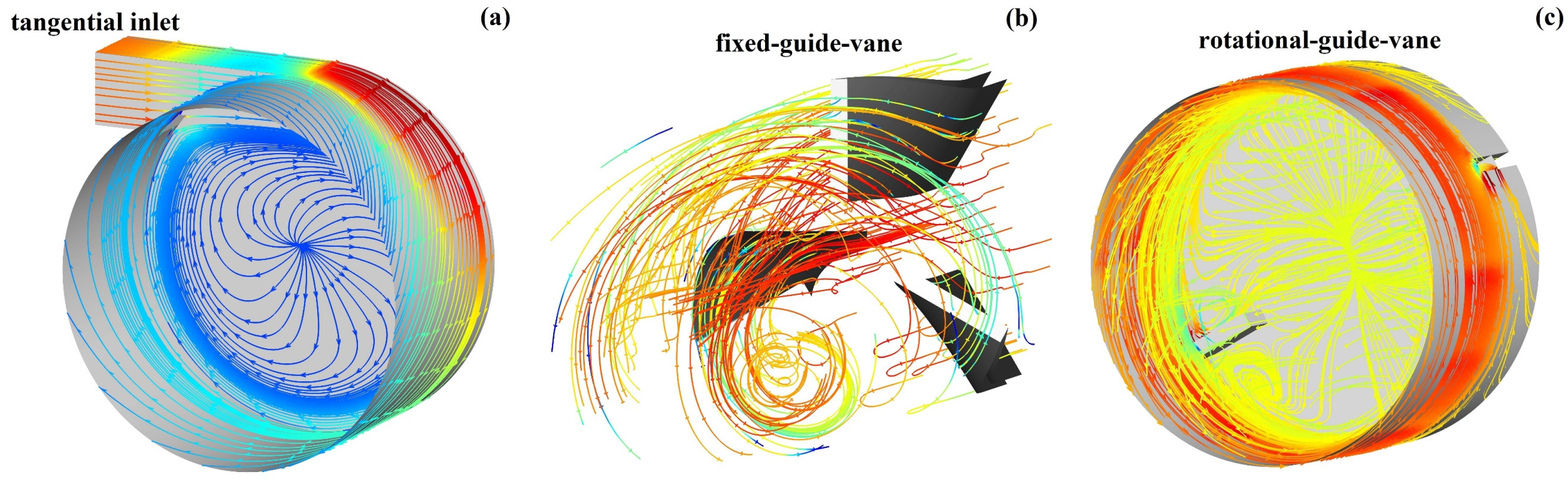 Regarding tangential inflow swirling flow, vortex eccentricity and vortex-core processing remain central research focuses. Yazdabadi et al. [