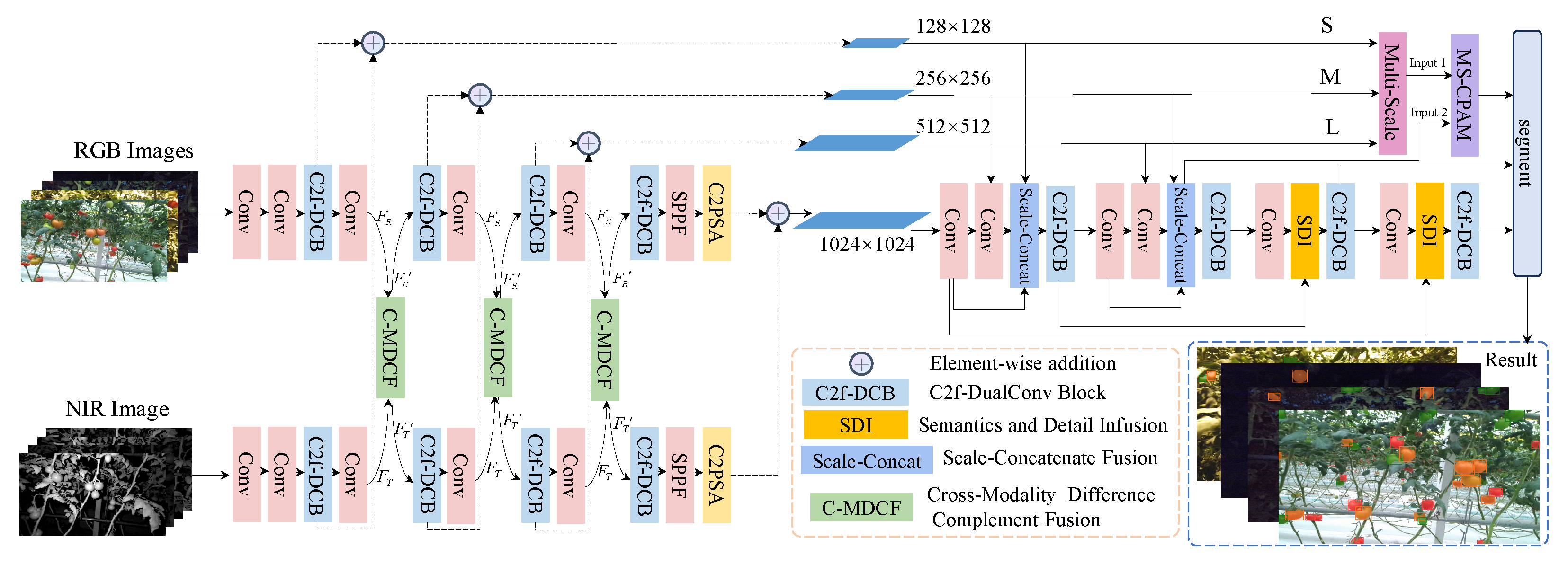 22] to effectively integrate complementary features from RGB and IR modalities, thereby enhancing the accuracy and robustness of tomato fruit segmentation, as shown in