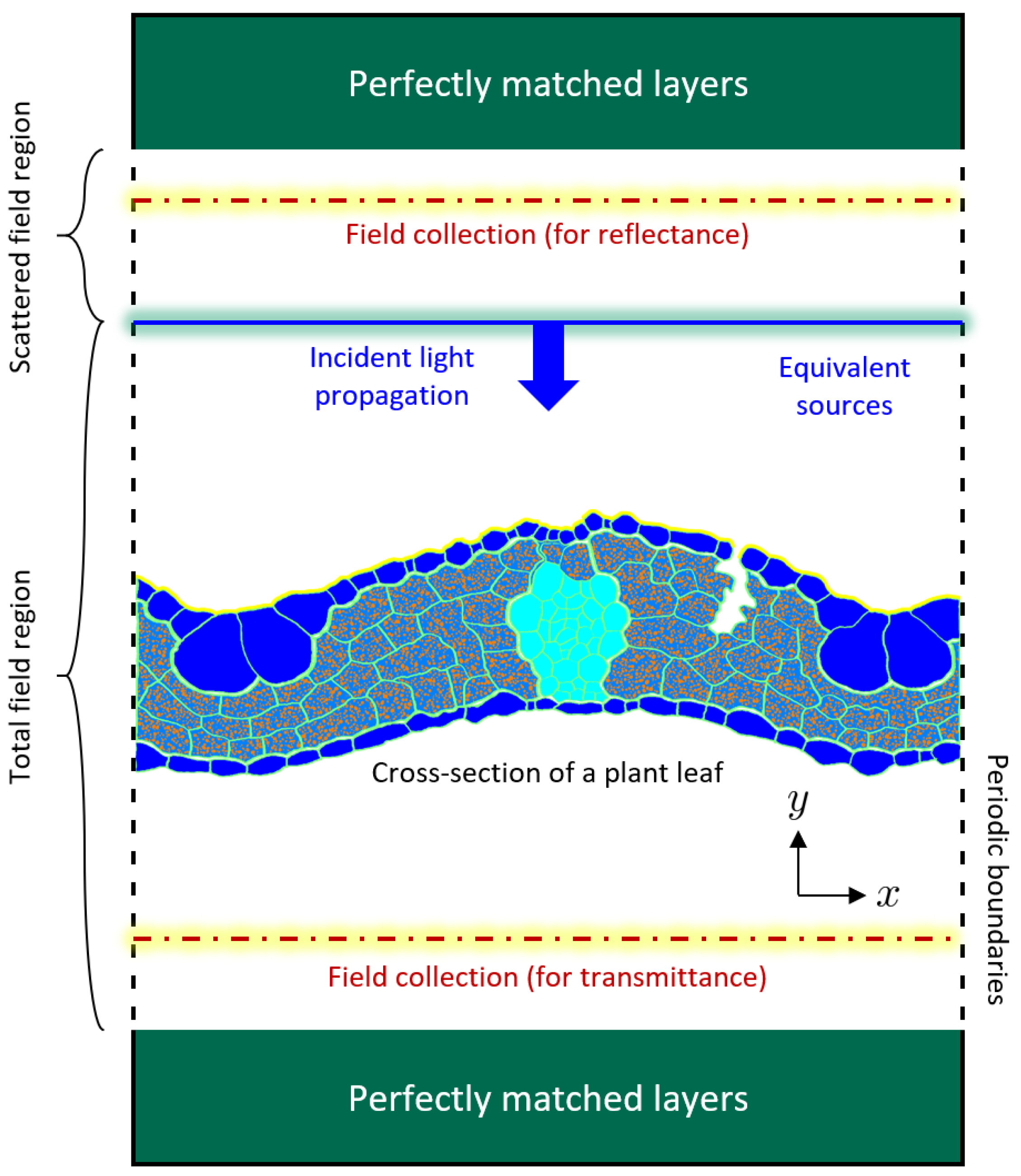 - Coupling leaf-scale FDTD with canopy-level radiative-transfer models may establish a multiscale pathway linking cellular anatomy to airborne or satellite hyperspectral observations.