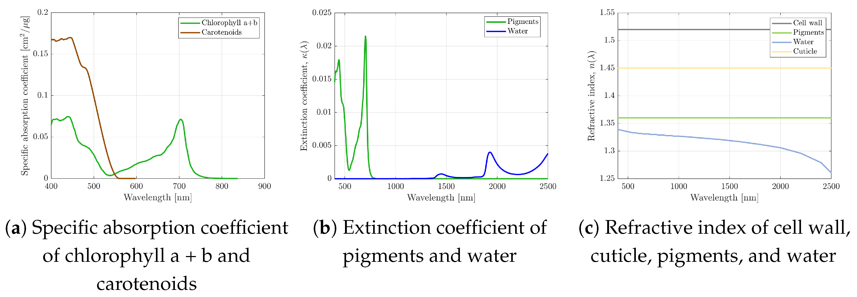 - Gausman, H.; Allen, W.; Escobar, D. Refractive Index of Plant Cell Walls. Appl. Opt. 1974, 13, 109–111. [Google Scholar] [CrossRef]