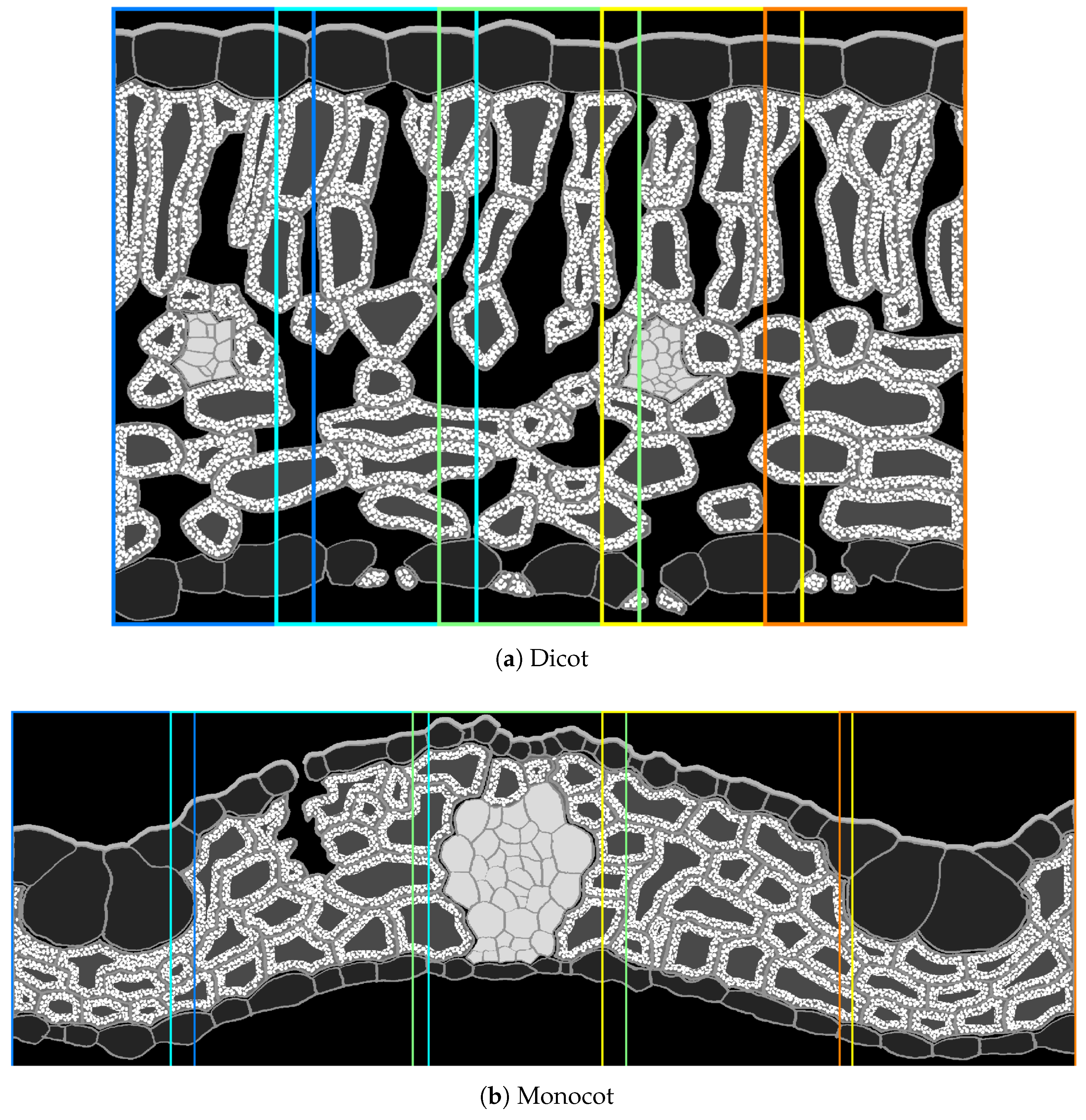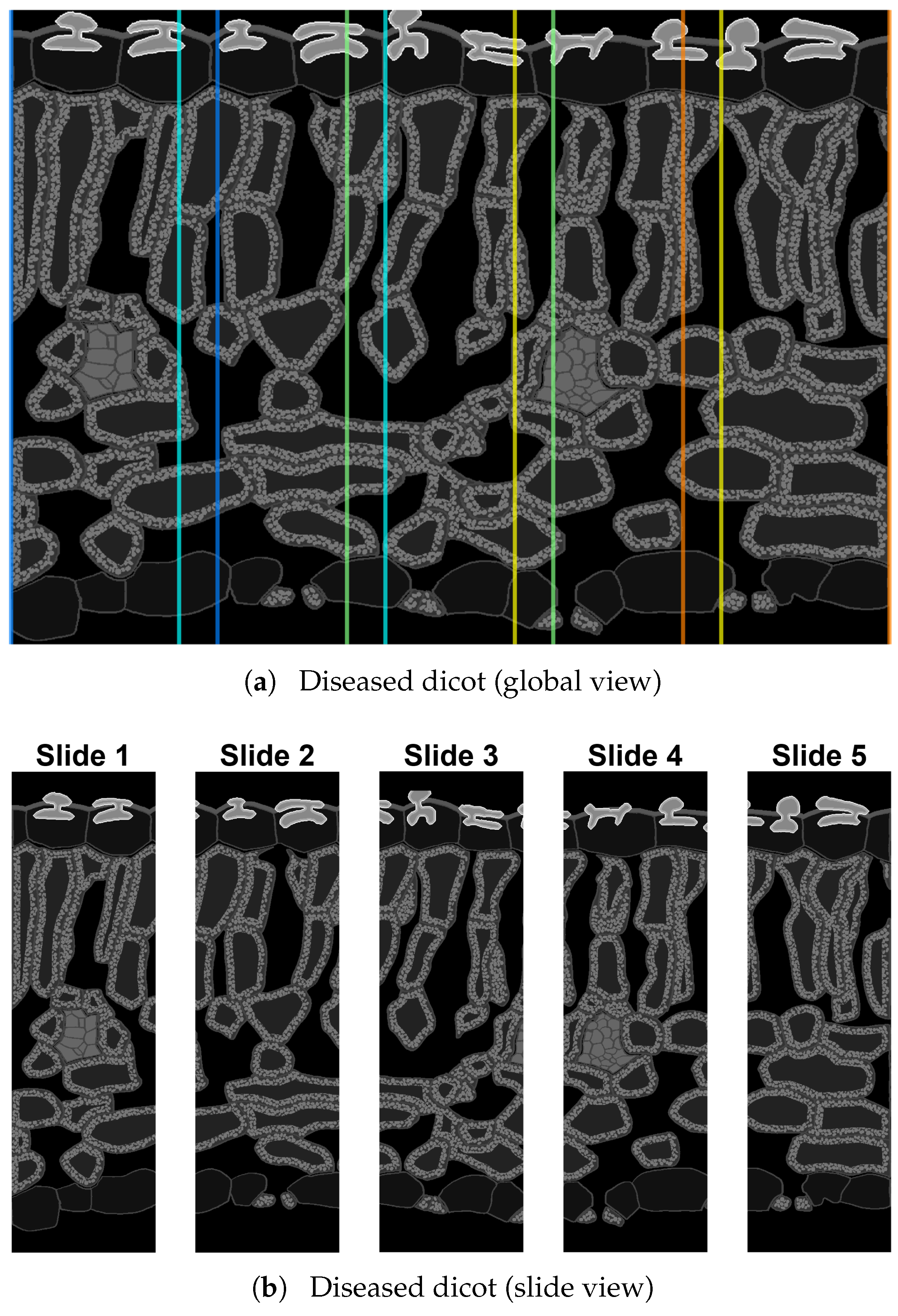 2.7. Reconstruction of Internal Plant Cross-Section Structure