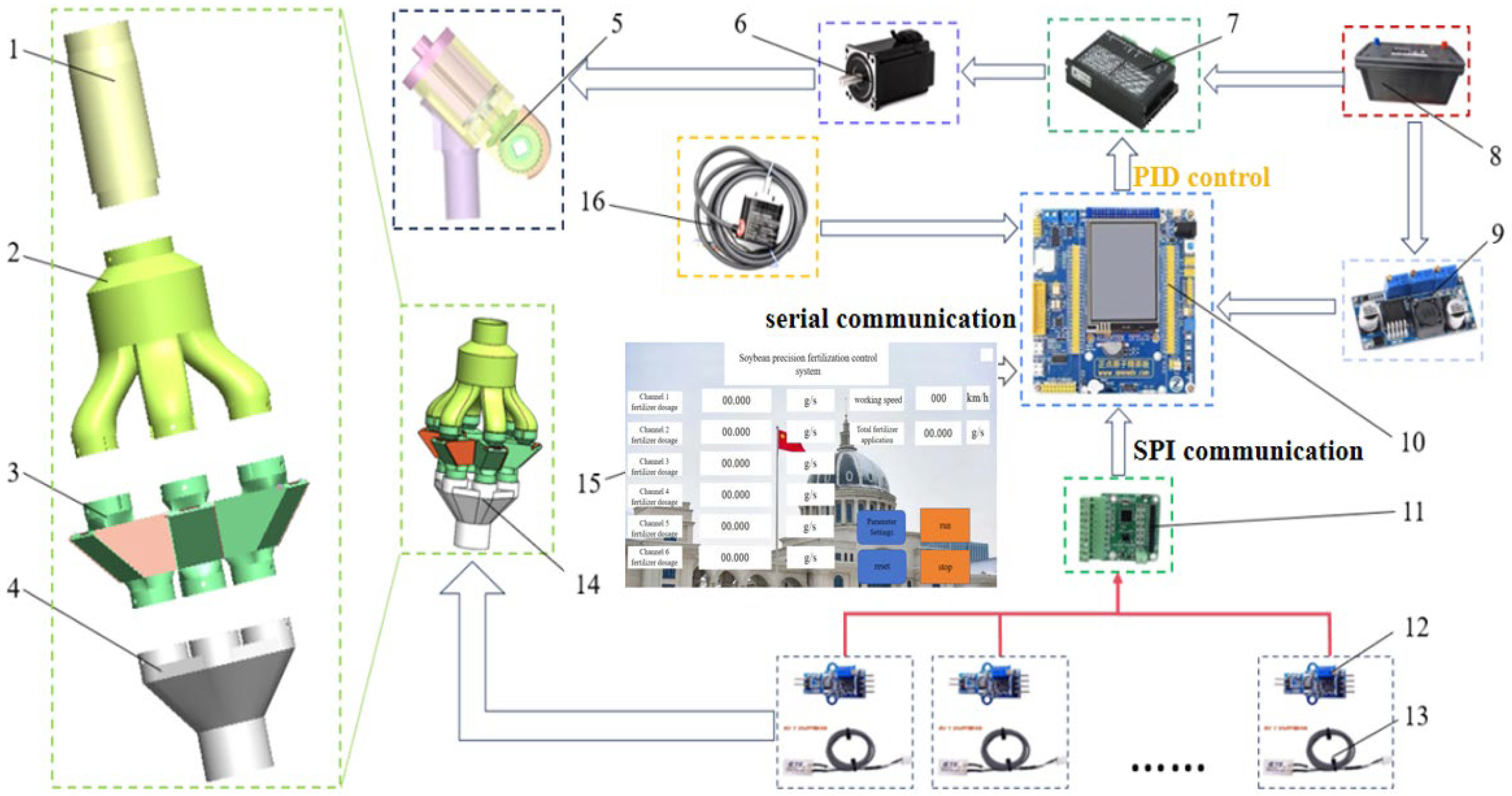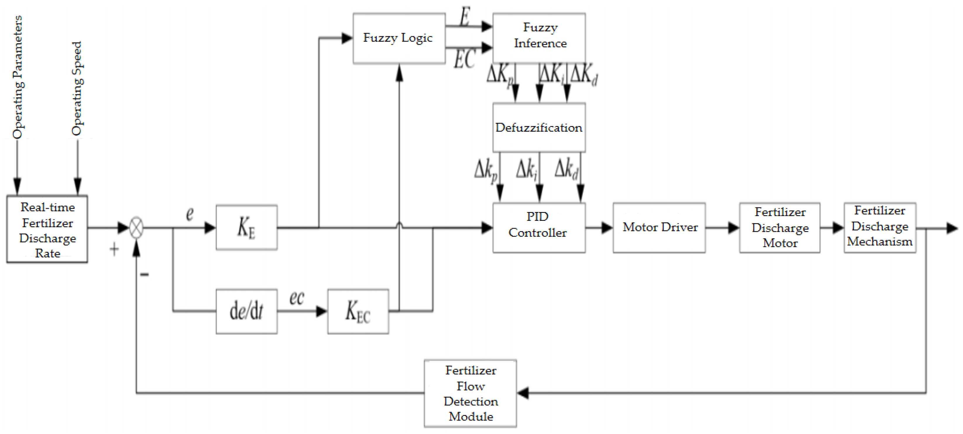 - Zhang, J.; Yan, S.; Ji, W. Research on Precise Application Control System for Multiple Solid Fertilizers Based on Incremental PID Algorithm. Trans. Chin. Soc. Agric. Mach. 2021, 52, 99–106. [Google Scholar] [CrossRef]