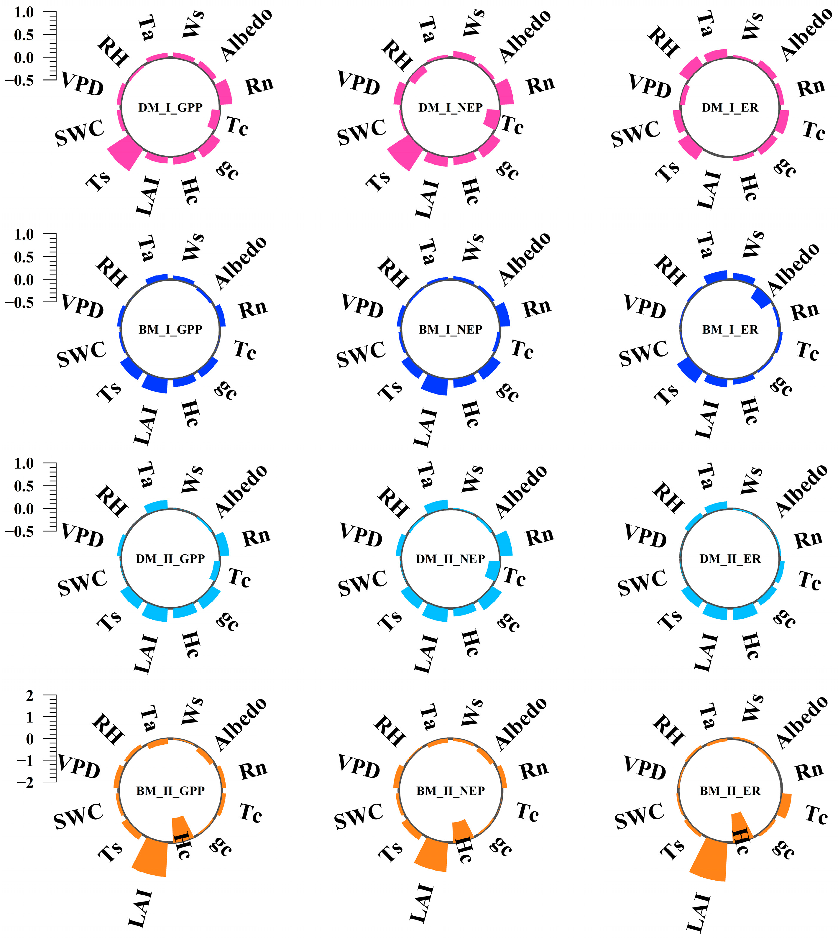 3.2. Impact of Environmental and Biological Factors on Carbon Flux