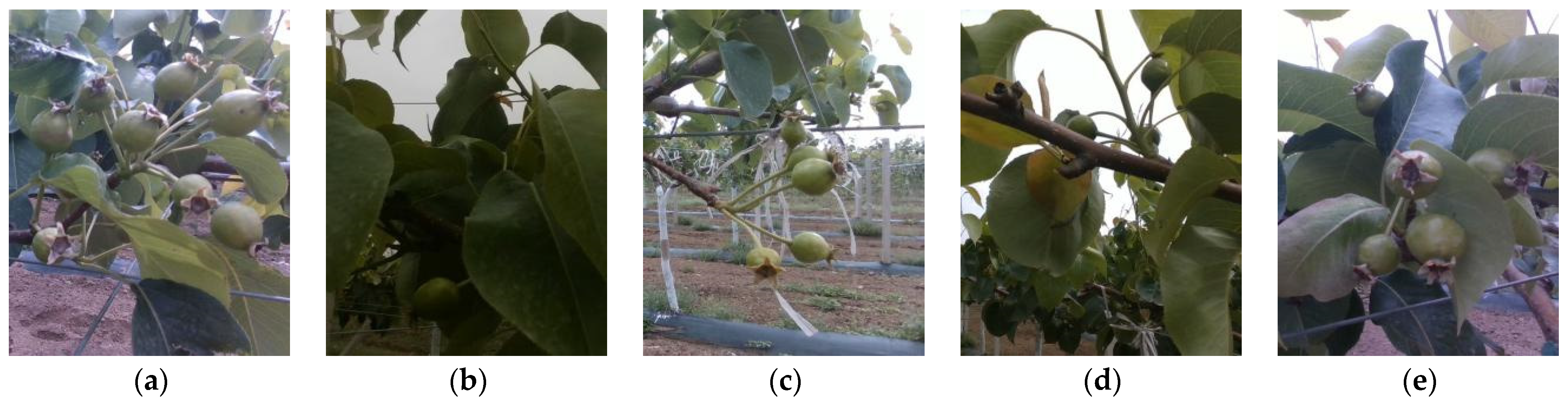 - Ma, X.; Su, X.; Qiao, J.; Zhang, X.; Liu, X. Green and High-Efficiency Cultivation Techniques of ‘Yuluxiang’ Pear in Shenmu, Shaanxi Province. North. Fruits 2025, 28–31. (In Chinese) [Google Scholar]
