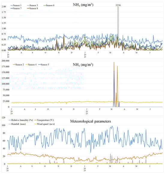 Daily results of ammonia (NH3) concentrations and meteorological parameters in the 8 sensors from July 2024 to June 2025.