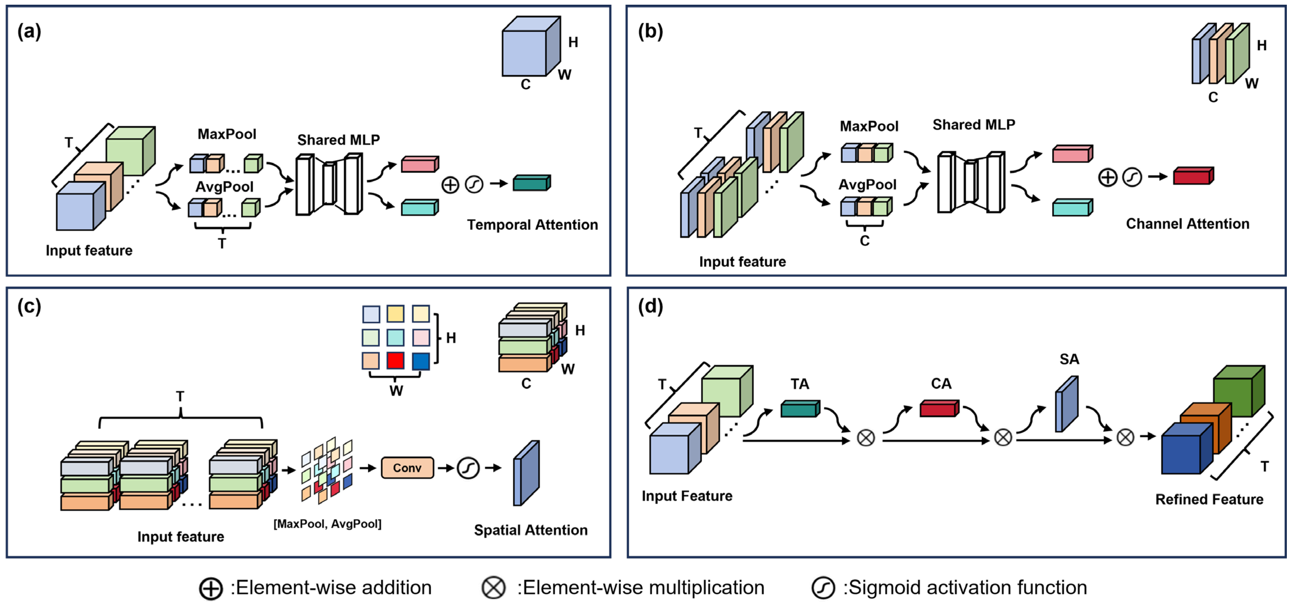 40] into a multi-dimensional attention mechanism and injected it into SNN architectures, revealing the potential of deep SNNs as a general-purpose backbone for diverse applications. However, challenges remain when integrating attention modules into SNN architectures intended for deployment on neuromorphic hardware that supports sparse addition operations. This is because attention score computation typically requires partial multiplication units to dynamically generate attention weights, which may impede the spike-driven nature of SNNs.