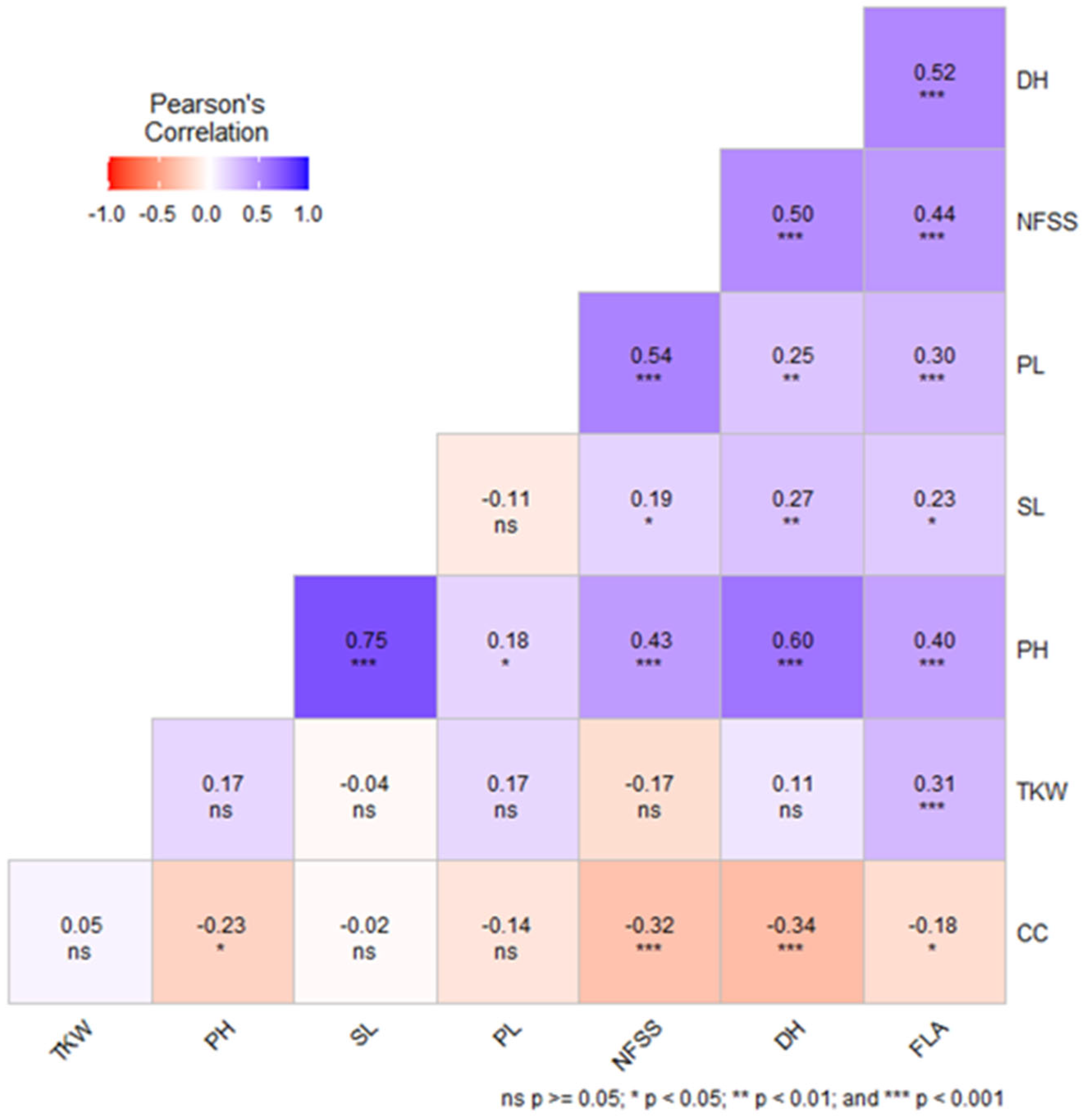 3.2. Phenotypic Correlation Between Traits Analyzed