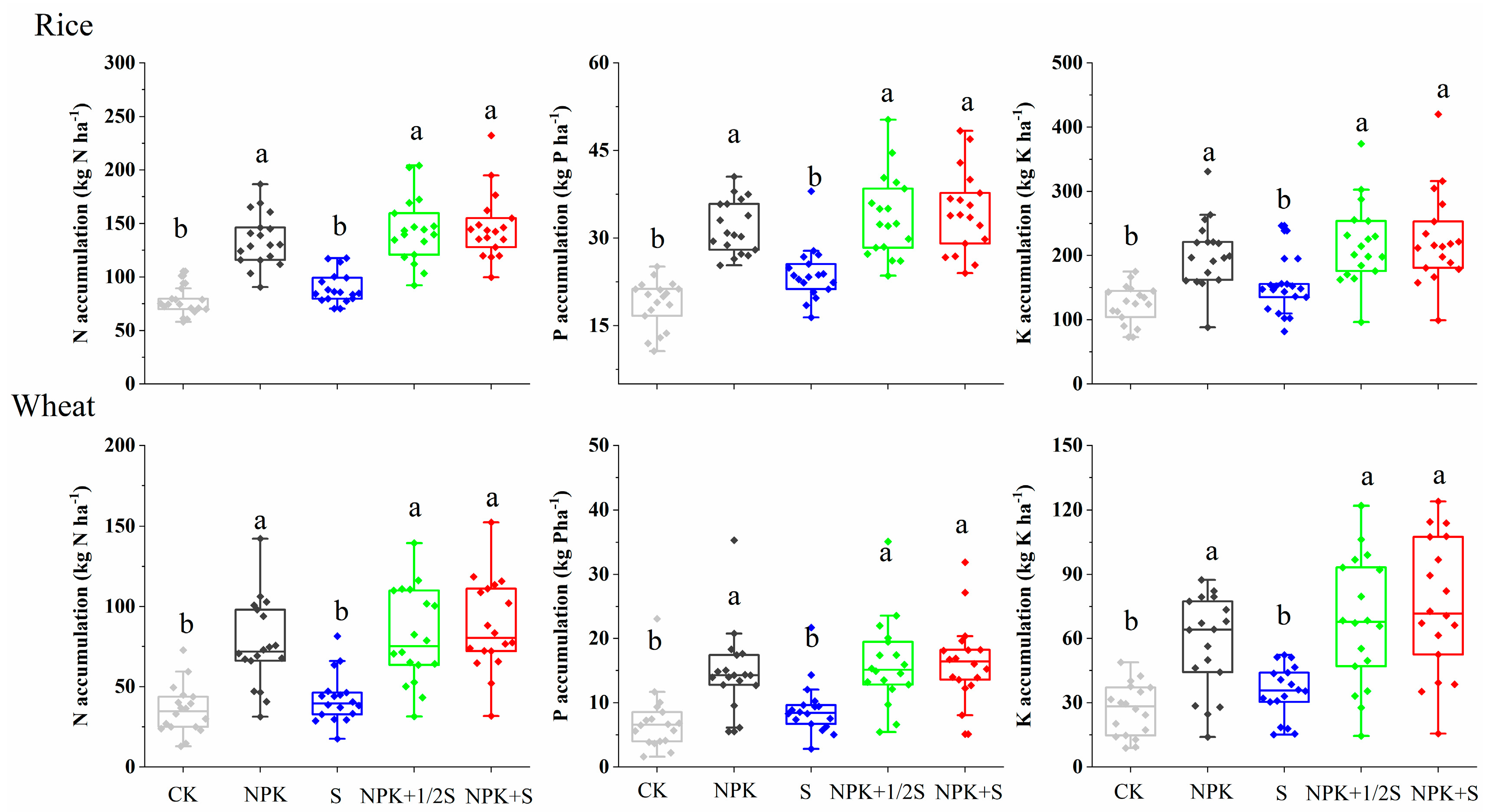 | Nutrient | Treatment | Input in Rice Season (kg ha−1) | Input in Wheat Season (kg ha−1) | Output in Rice Season (kg ha−1) | Output in Wheat Season (kg ha−1) | Balance (kg ha−1) | ||