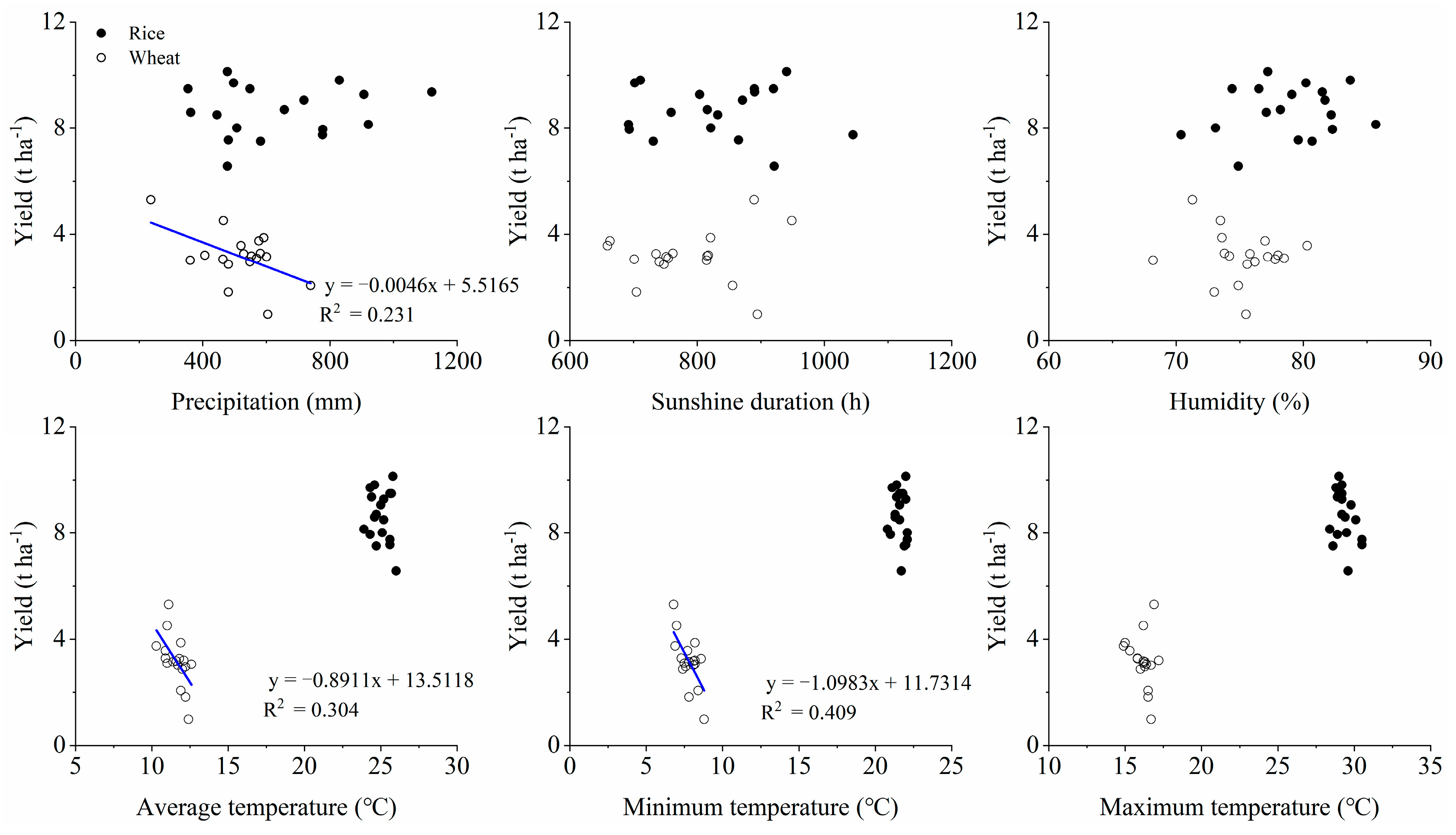 3.5. Climatic Factors and Their Relationship with Crop Yield