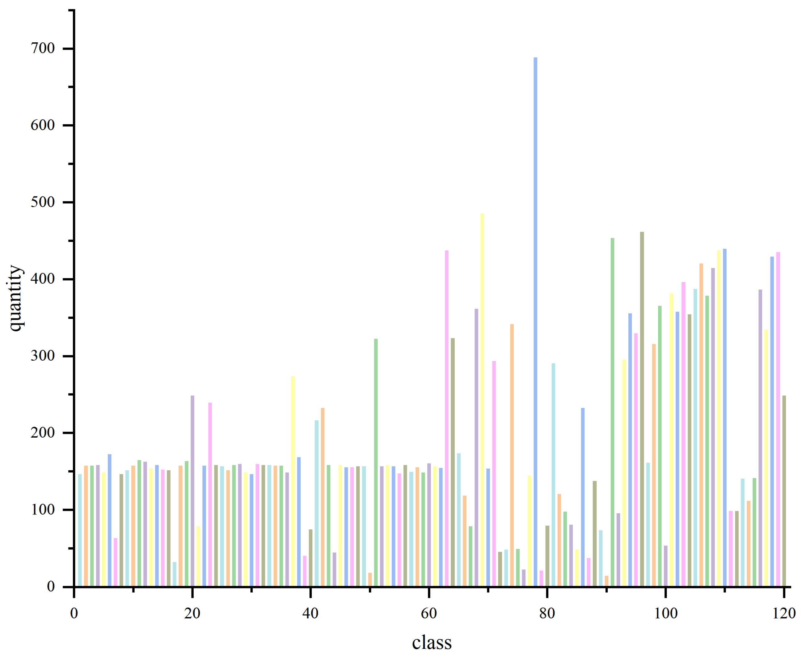 Figure 4. Two key observations can be drawn from the distribution results. First, there is a pronounced imbalance in sample quantity across categories, with the largest class containing 690 samples and the smallest only 16. This uneven distribution reflects the natural occurrence frequency of different harmful organisms but also introduces challenges for model training. Second, although all images share a consistent file format, noticeable variation exists in image resolution, with some samples exhibiting substantial differences in pixel size.