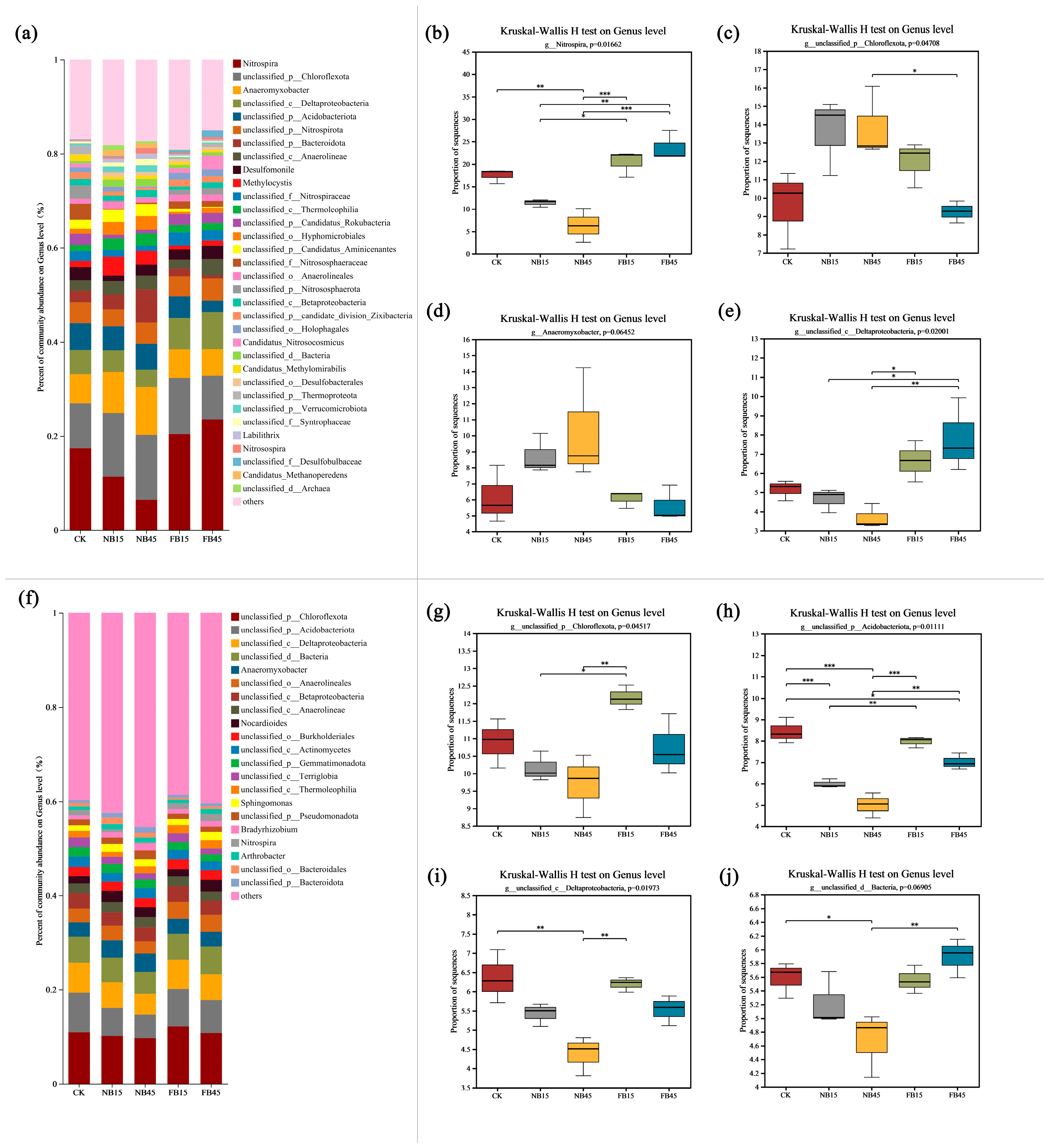 3.3. Analysis of Microbial Species Involved in Nitrification and Denitrification in Paddy Field Soil