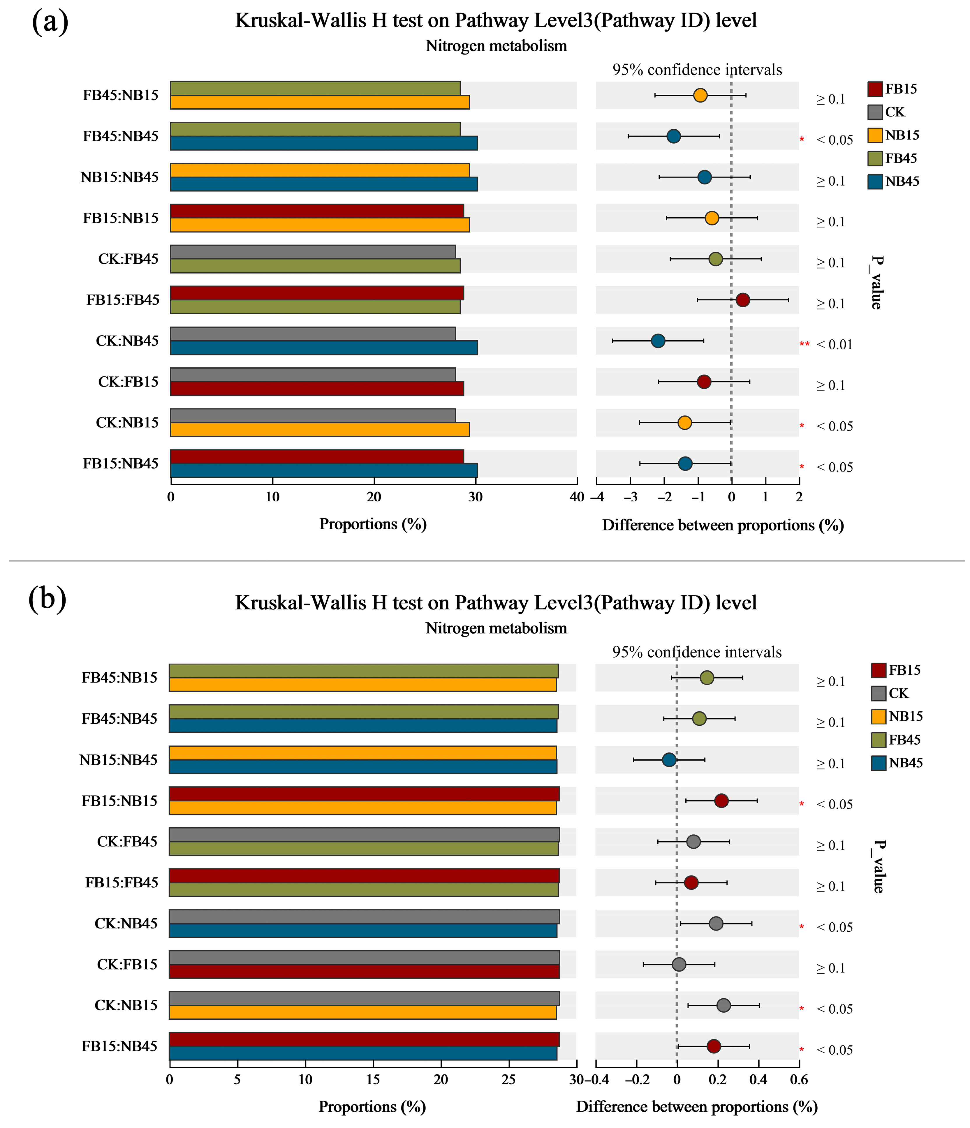 3.6. Comparison and Differential Analysis of the Microbial Functions of Nitrification and Denitrification in Paddy Field Soil