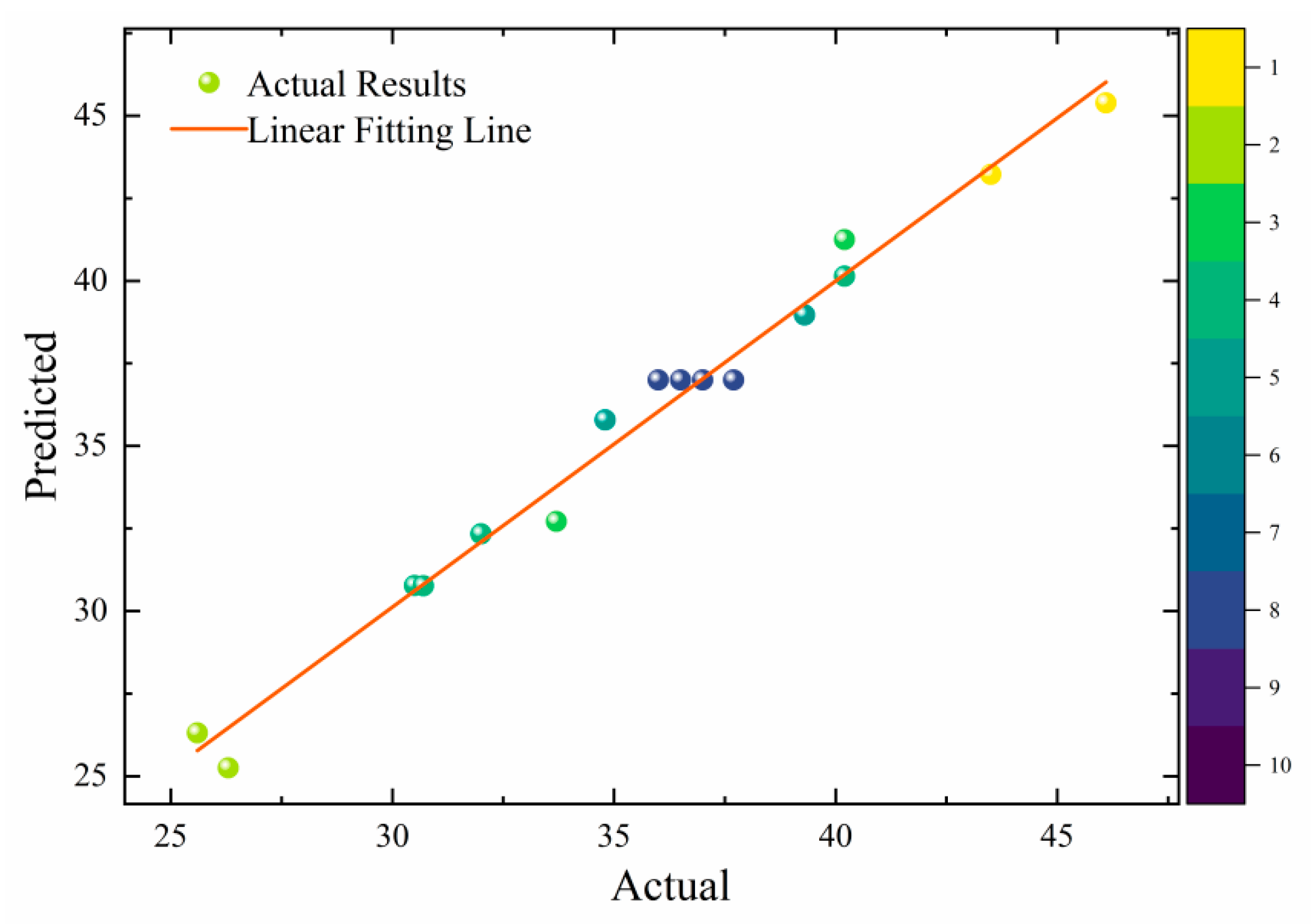 2 = 0.9183, suggests the good correlation of the model, which exhibits a high degree of fit with the test data and is applicable to 91.83% of the test data. The adjusted coefficient of determination, R