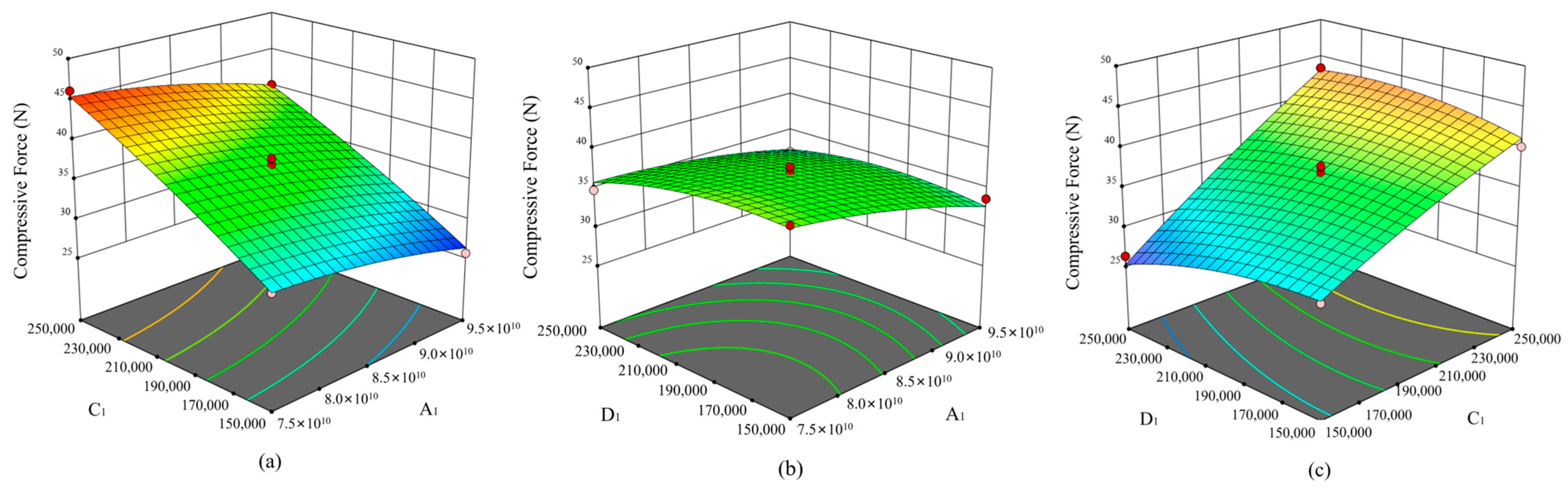 The compression force was predicted using the regression equation under various bonding parameter conditions. Based on the above analysis, a comparison diagram of physical and simulation tests (