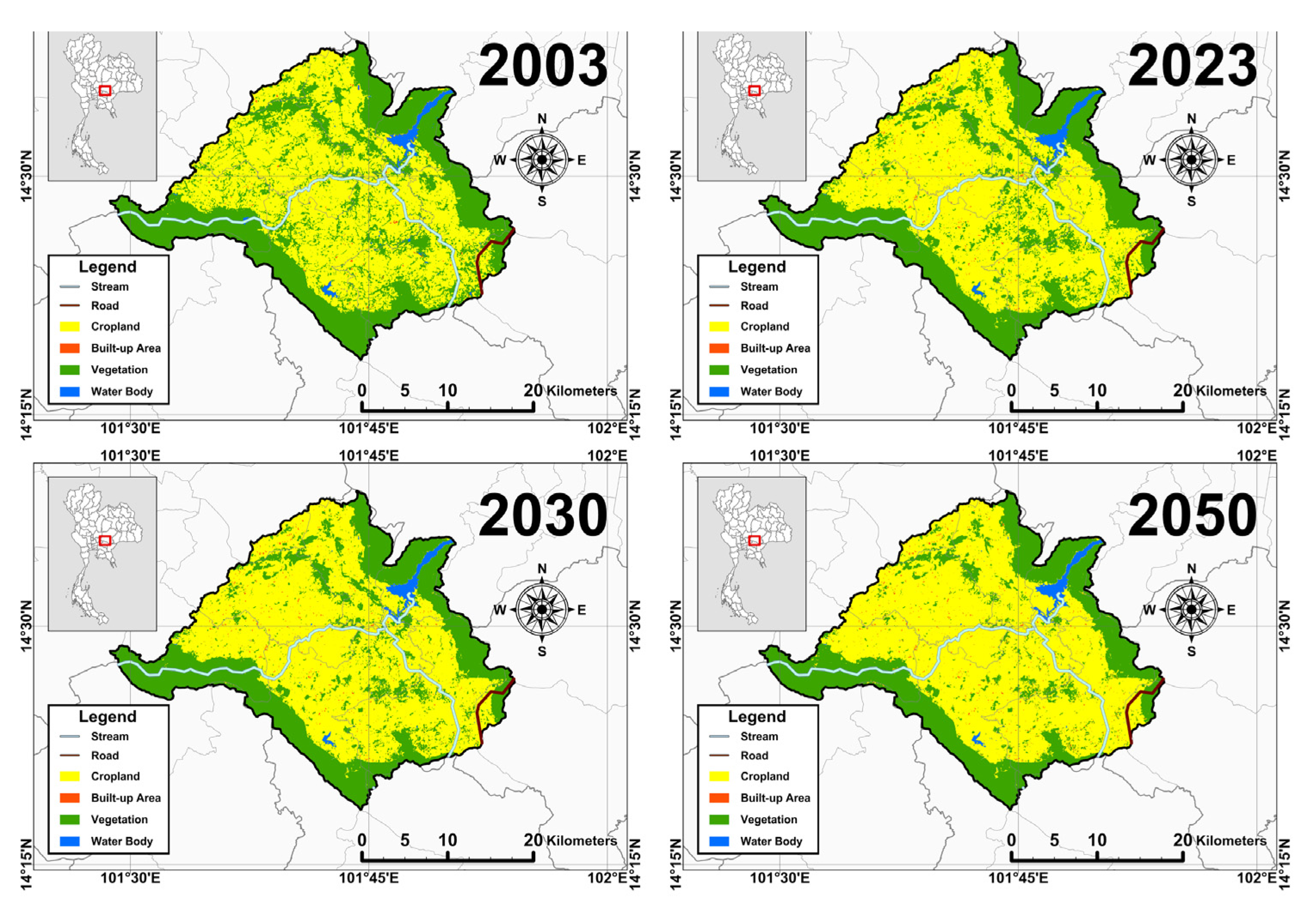 APA StyleSeeboonruang, U., Mandadi, R., Thammaboribal, P., Gonzales, A. L., & Ganni, S. V. S. A. B. (2026). Land Use Classification, Prediction, and the Relationship Between Land Use and Sediment Loss in the Lam Phra Phlong Watershed, Thailand. Agriculture, 16(4), 448. https://doi.org/10.3390/agriculture16040448