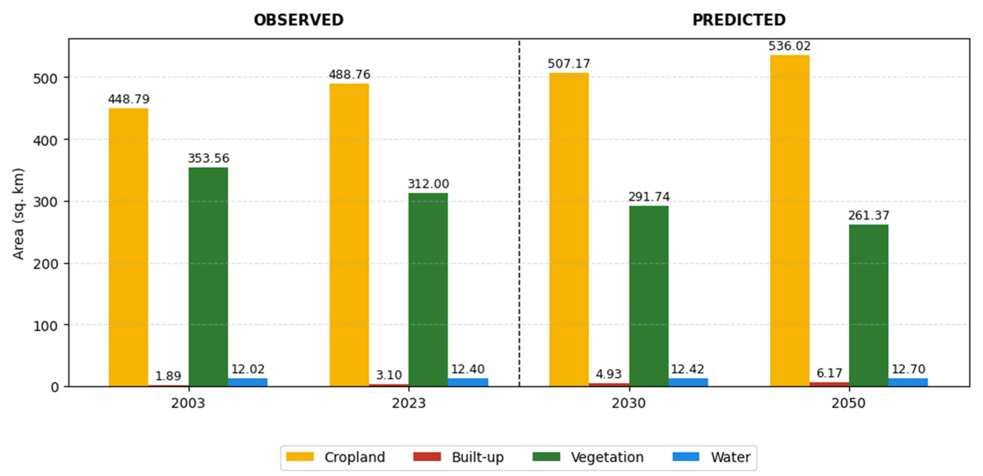 | Land Use/Land Cover | LULC classification using Landsat imagery | https://earthexplorer.usgs.gov/ accessed on 11 February 2025 | Raster (GeoTIFF) | 30 m |