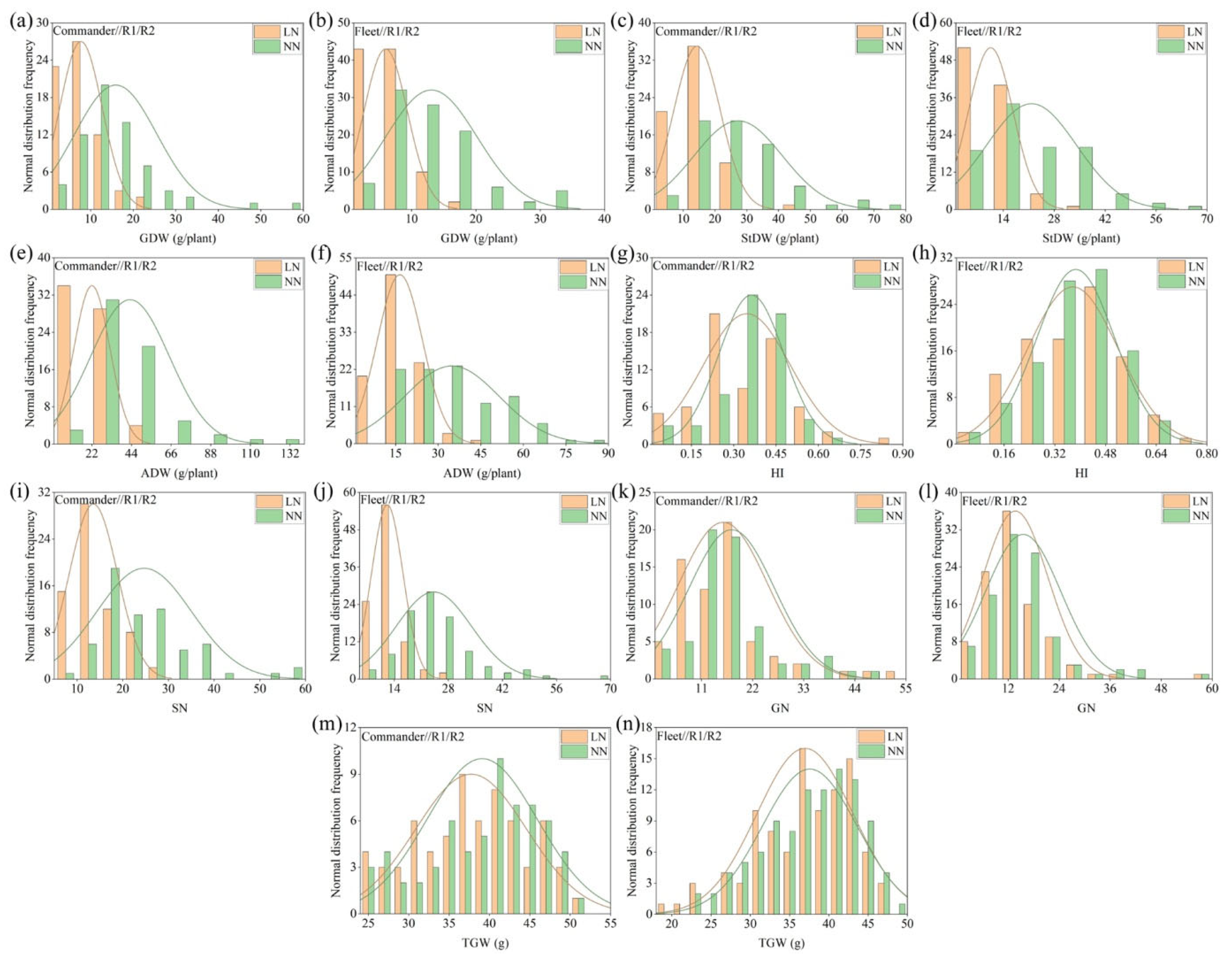 3.2. Phenotypic Analysis of Barley RIL Populations Under LN Stress