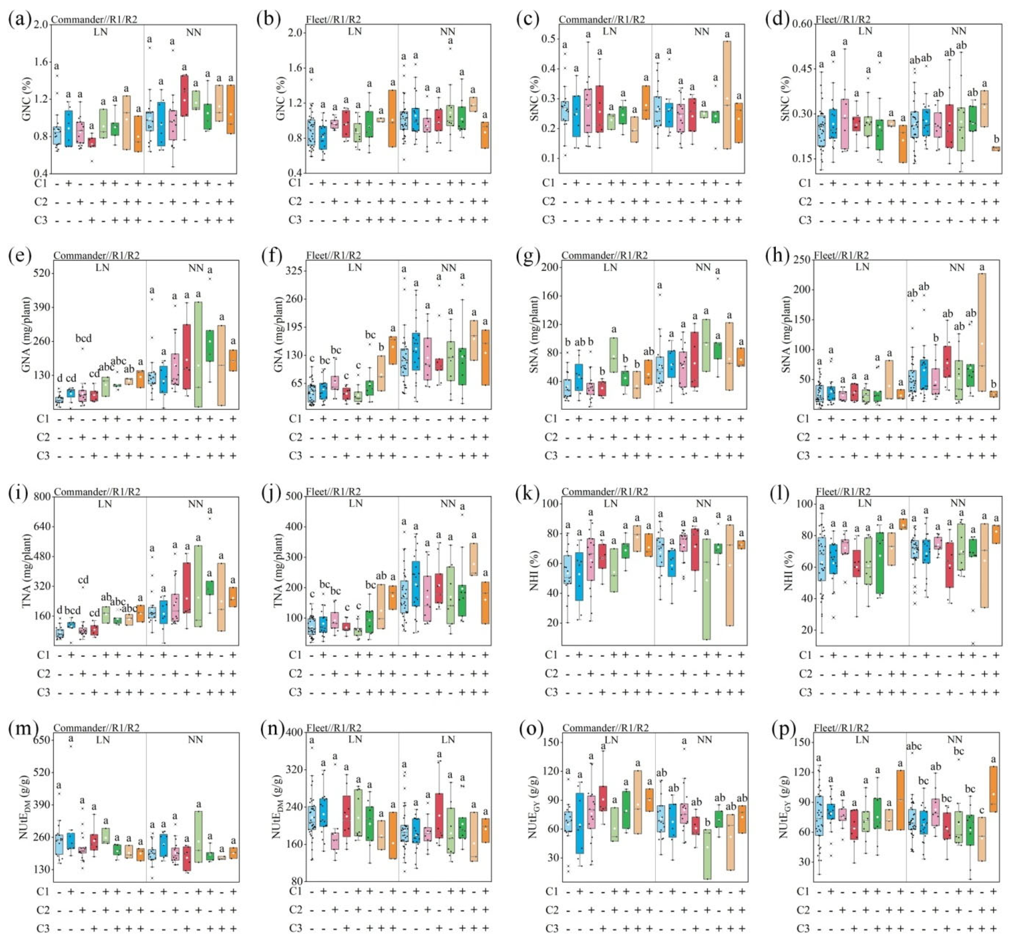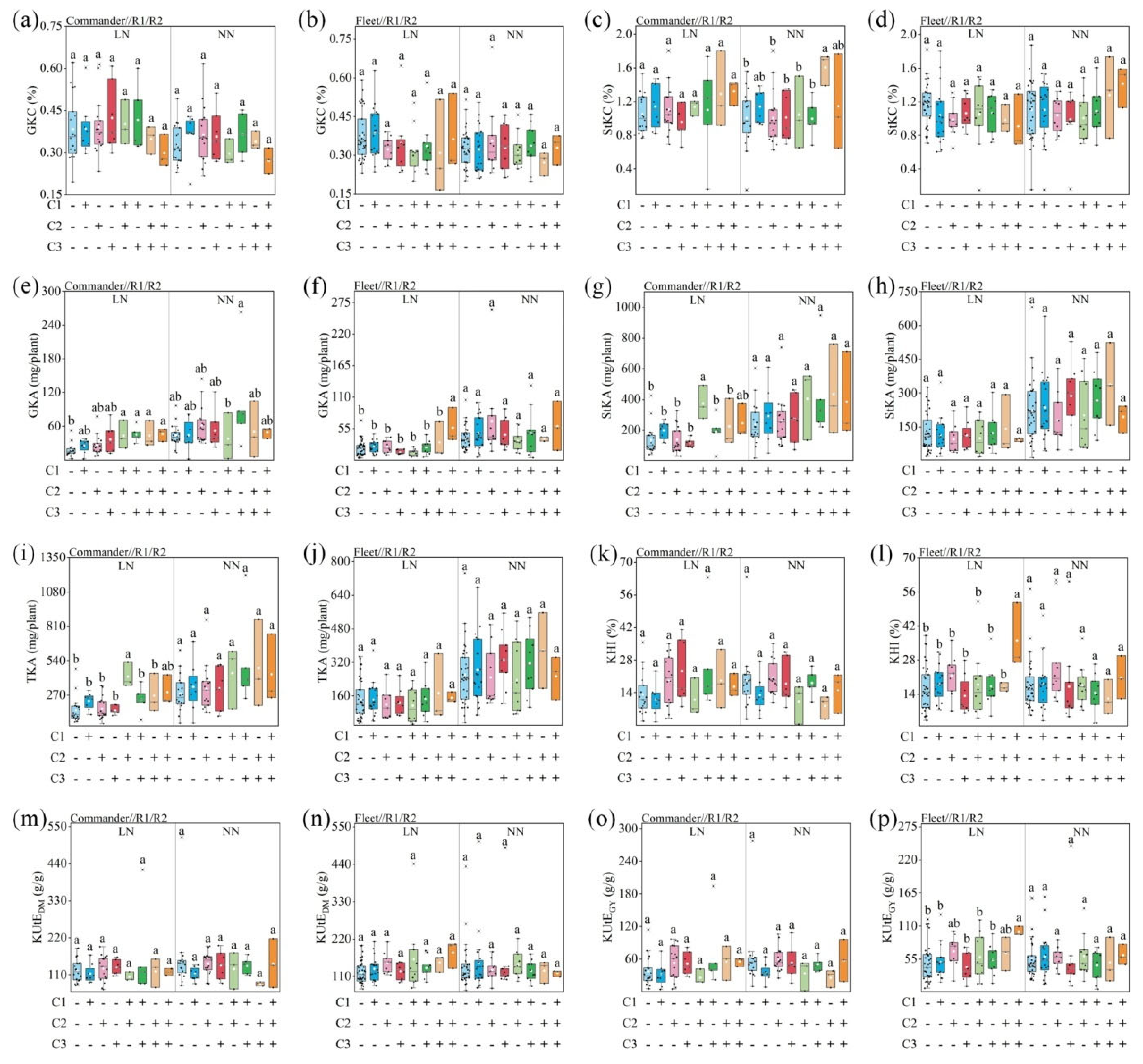 4.3. Effect of N Nutrition on N, P, and K-Related Traits