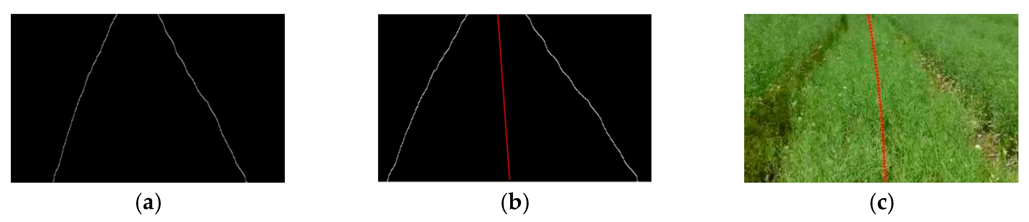 16] addressed the challenge of detecting navigation lines in mid-to-late-stage maize rows, where insufficient light and obstruction hinder detection. They introduced an Edge Extraction Module (EEM) and an ASPP module within the Fast-SCNN model to optimise path edge segmentation, thereby enhancing detection precision. Concurrently, they employed pixel scanning, weighted averaging, and least squares methods to detect and fit navigation lines, reducing heading angle deviation. Peng Shubo et al. [