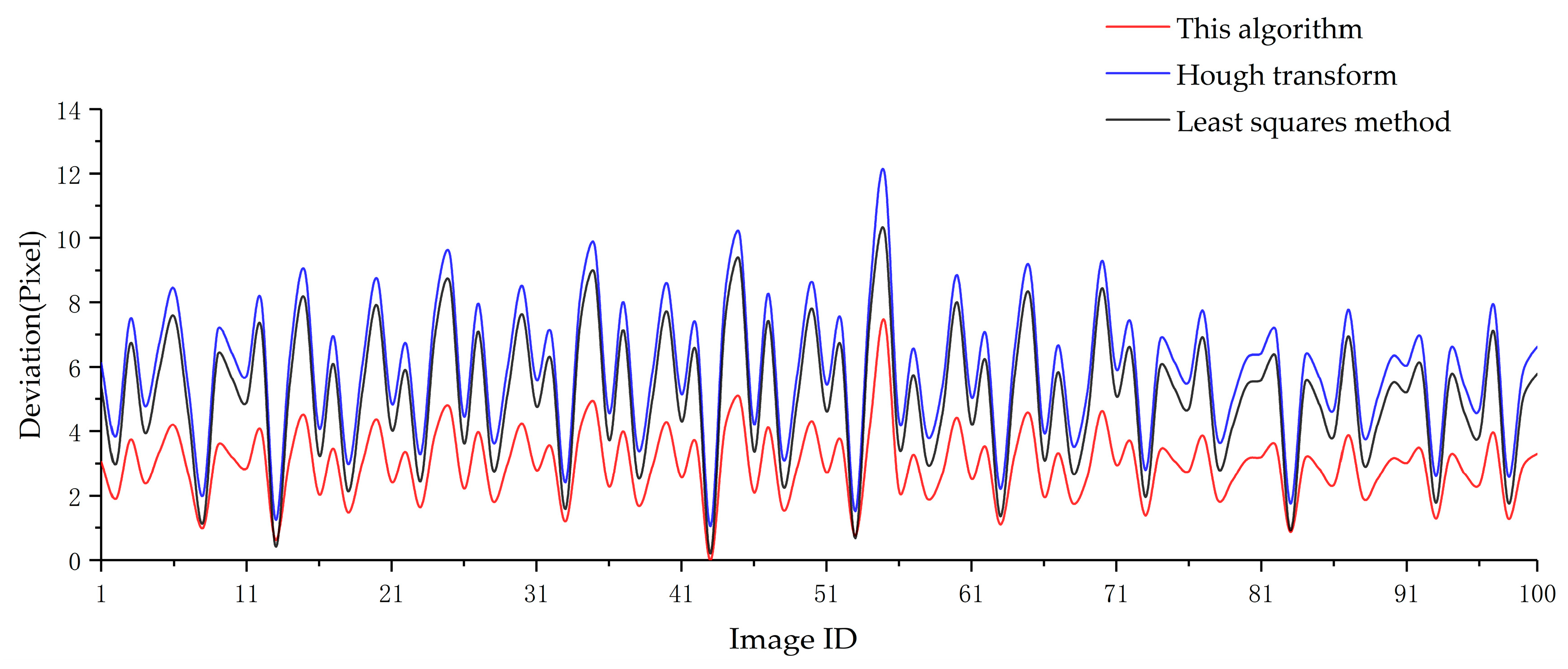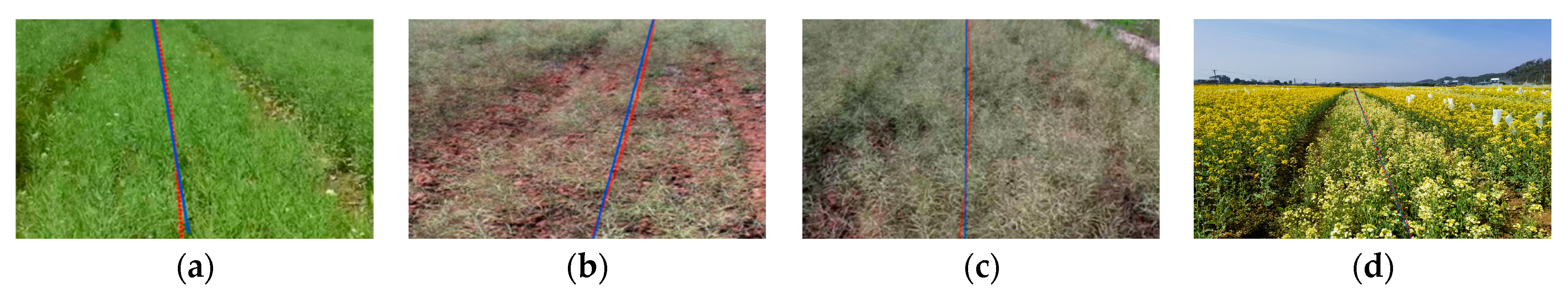 31], both of which are applicable to the navigation line fitting task in this study. However, the least squares method is only suitable for fitting ideal linear crop rows and assumes observation errors are unidirectional (occurring solely along the