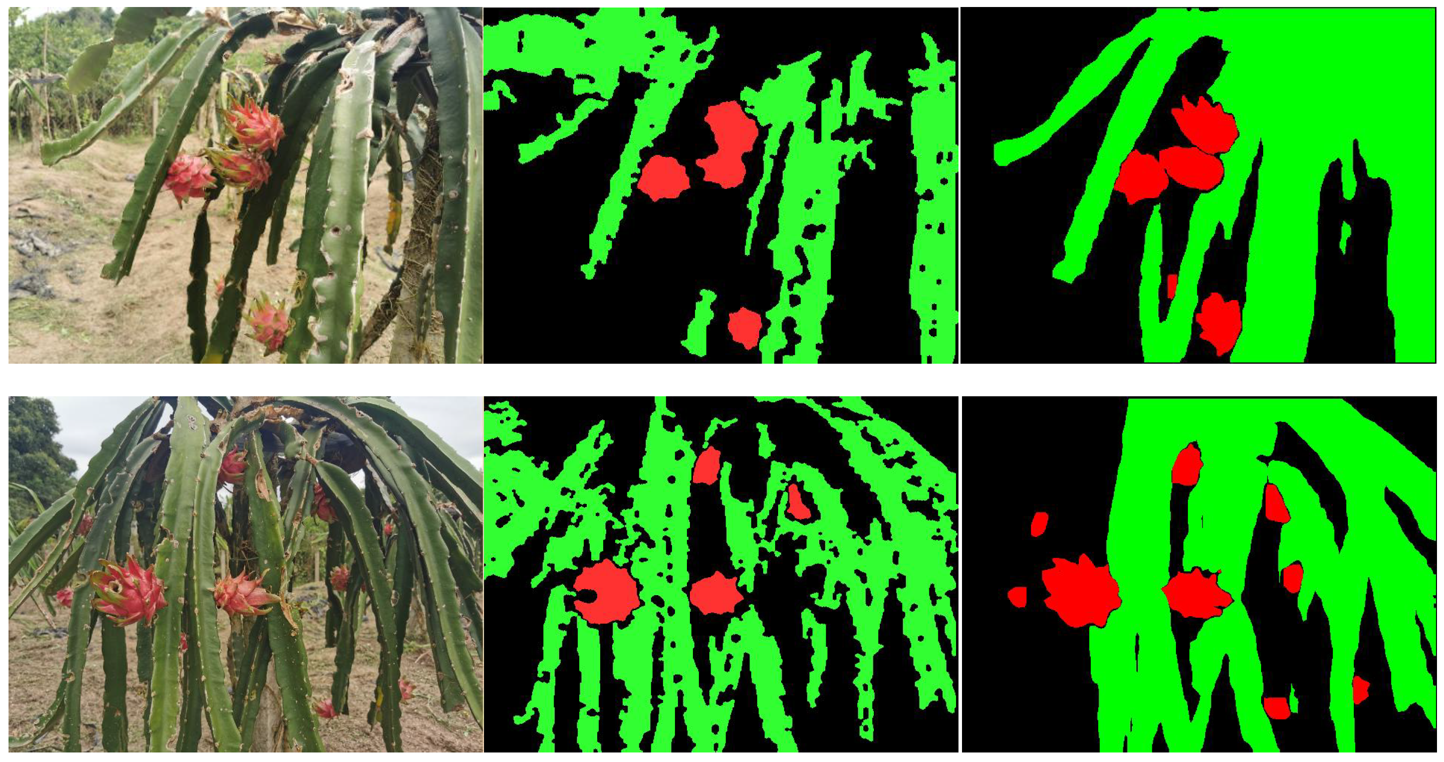 - Liu, Z.; Feng, Q.; Qin, C.; Lin, Y.; Xia, P.; Wang, H.; Gong, L.; Liu, C. EDSC-HRAFNet: An apple tree branch semantic segmentation model for harvesting robots under complex orchard conditions. Artif. Intell. Agric. 2026; in press. [Google Scholar] [CrossRef]