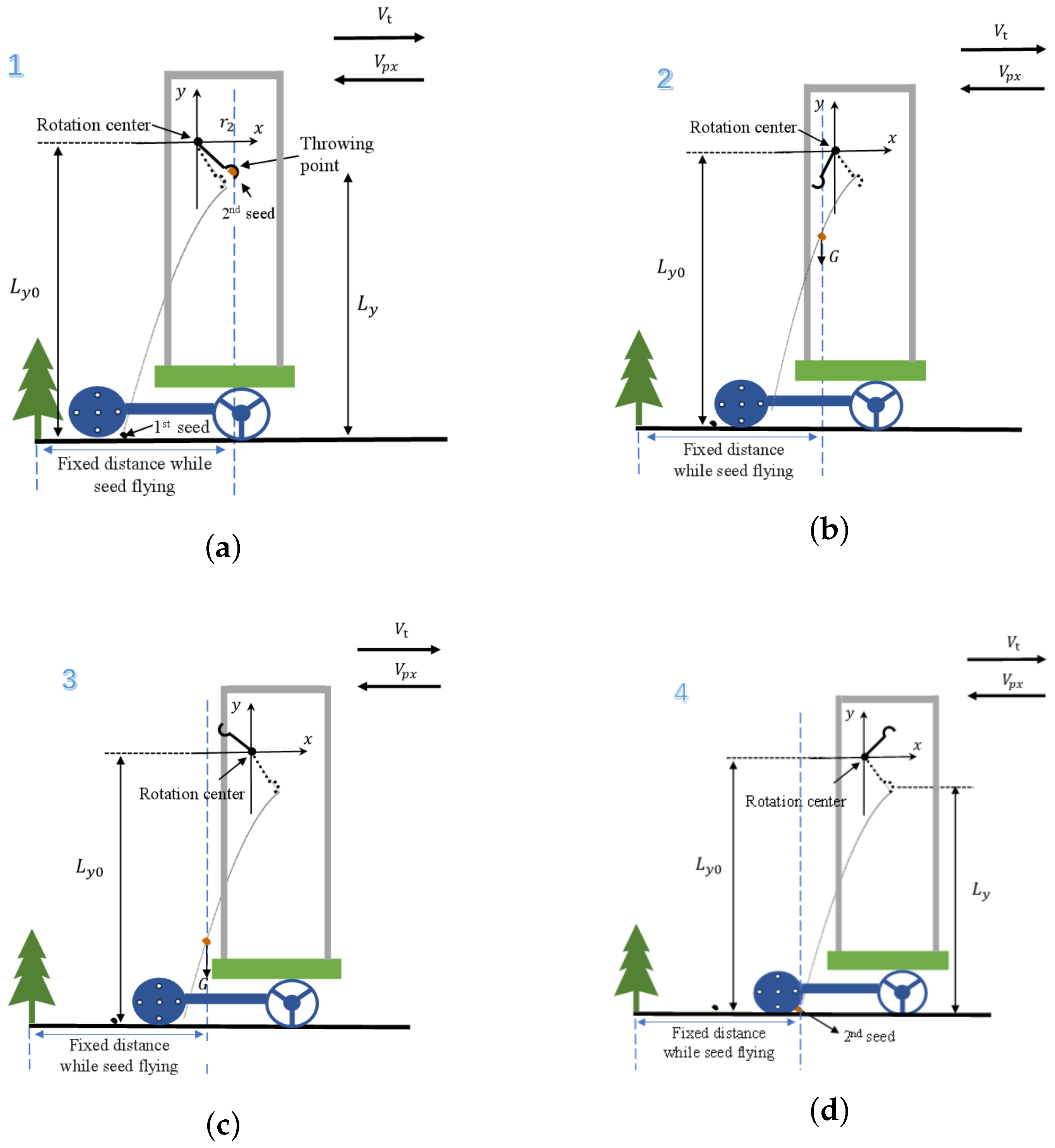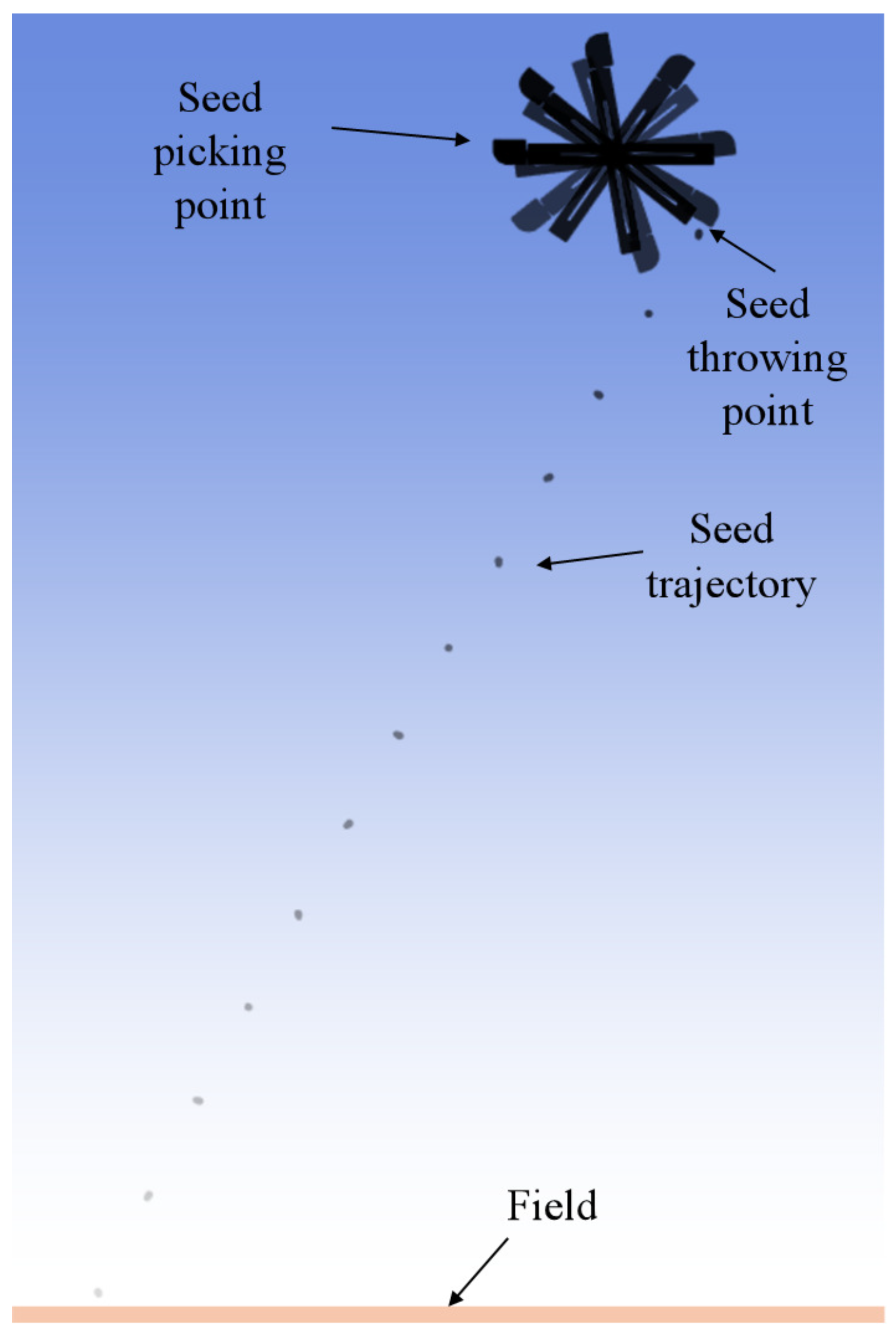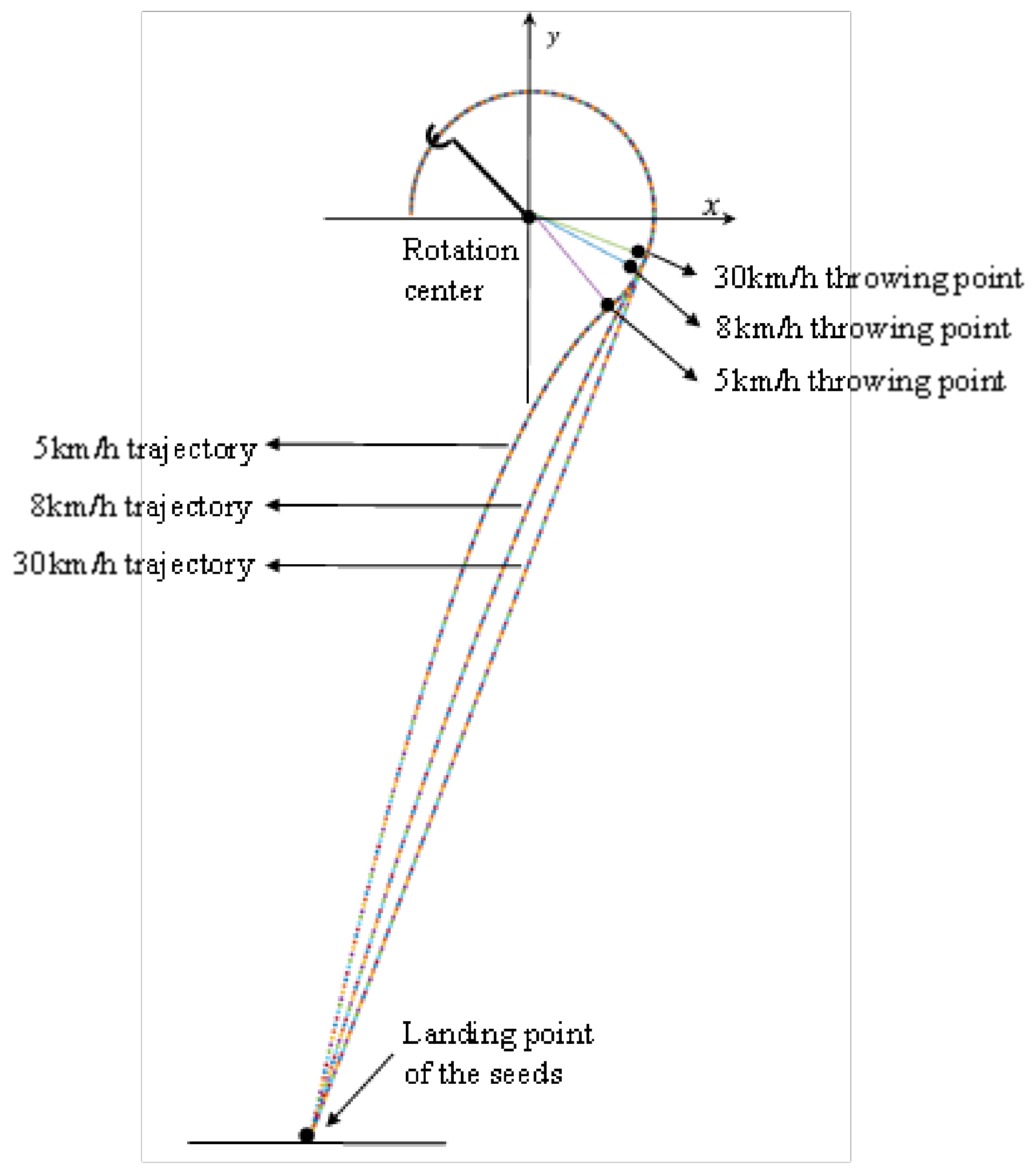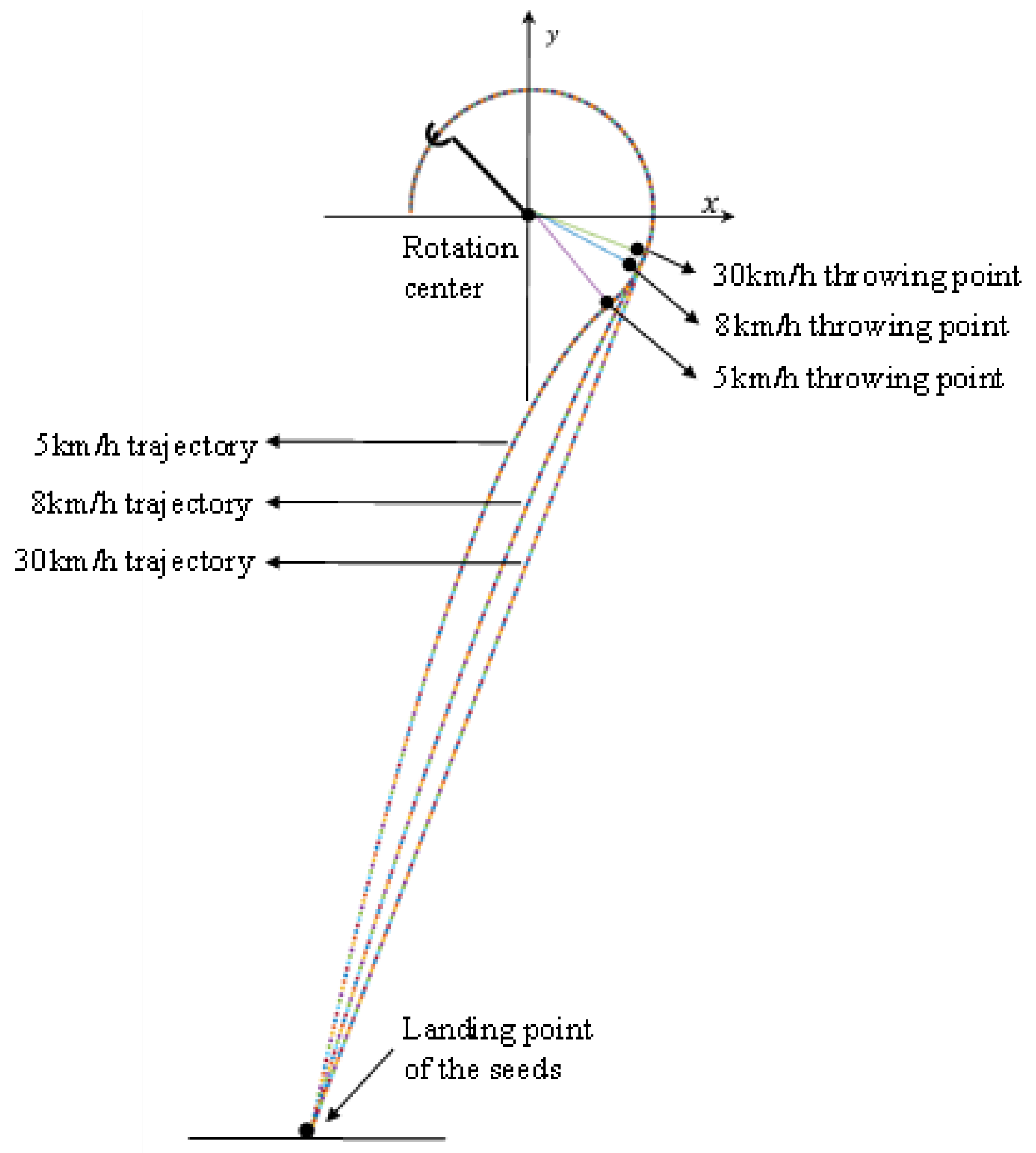 3.3.1. Seed-Throwing Process and Performance at Different Forward Speed