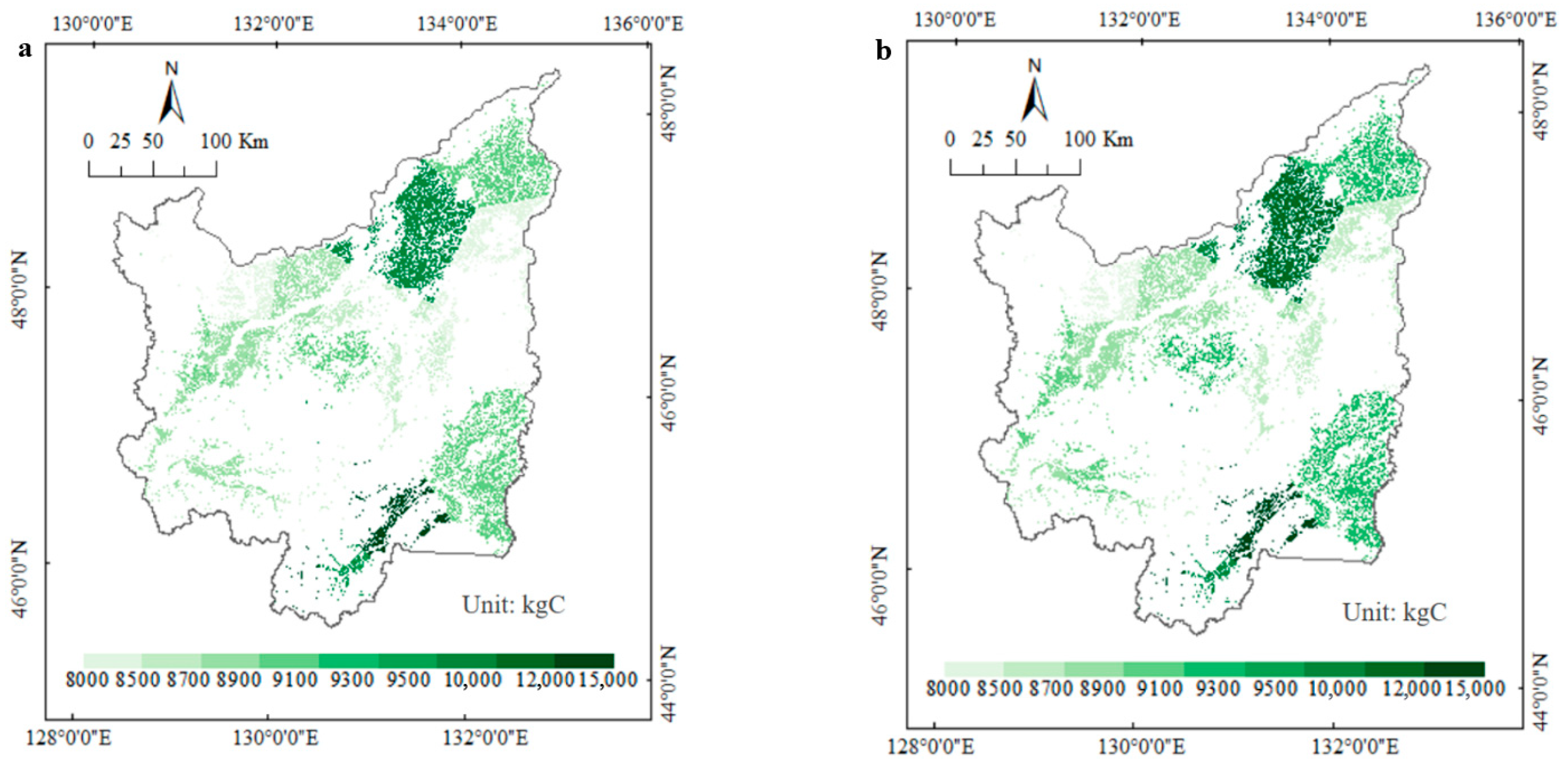 Supplementary Materials (Figures S1 and S2). The model has been calibrated and validated using field data collected from over 30 stations distributed across the study region. Specifically, the DSSAT model was validated using actual values from the Heilongjiang Statistical Yearbook, while the DNDC model was validated using data from 37 irrigation districts. The validation results demonstrated good model performance. For yield simulation using DSSAT, the normalized root mean square error (nRMSE) was 5.08%, with a coefficient of determination (R