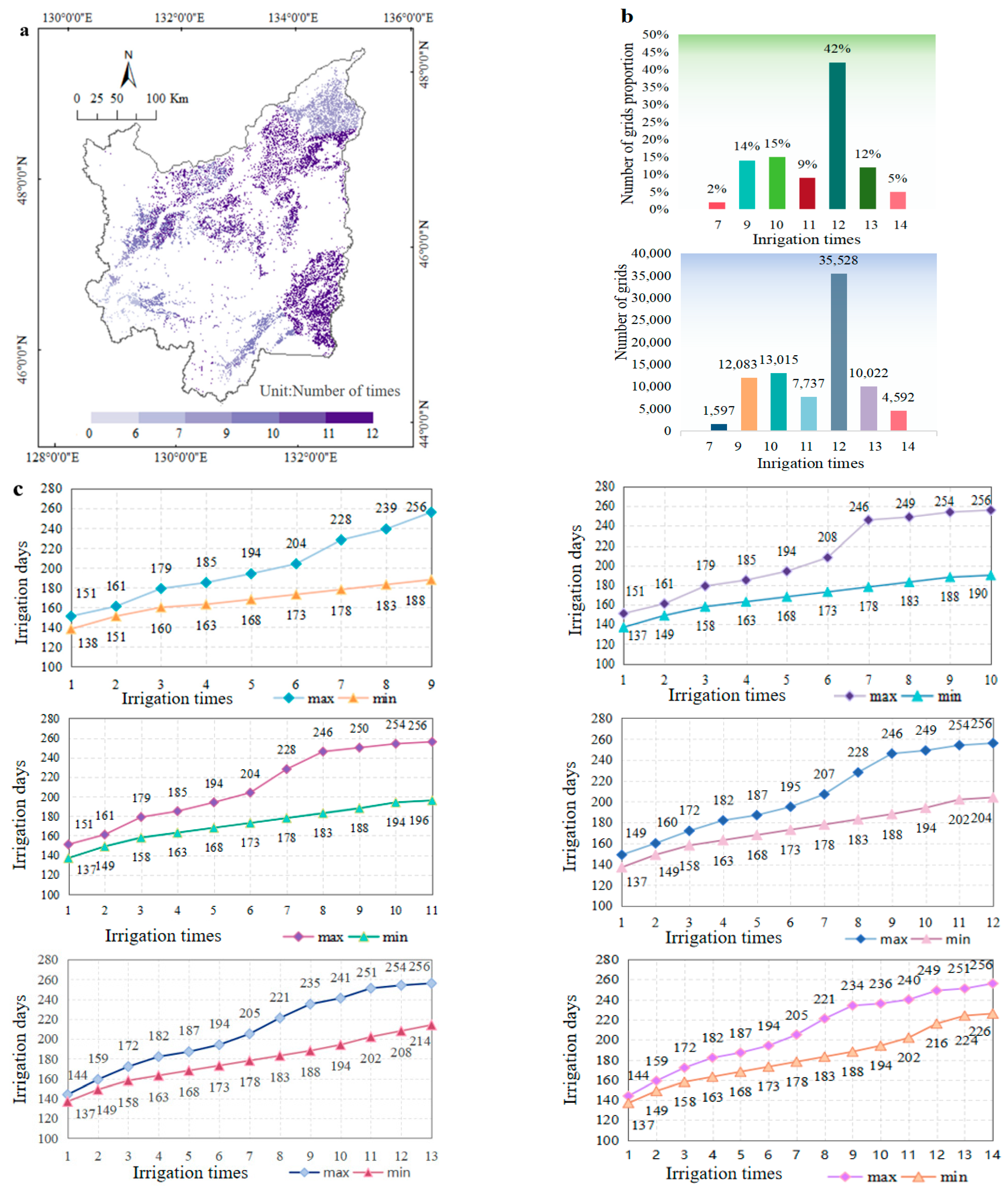 Spatial analysis revealed that optimal irrigation timing and frequency exhibit clear patterns correlated with local conditions. Grids characterized by sandy soils or located in warmer sub-regions tended to receive slightly earlier and more frequent irrigations during early growth stages to compensate for higher percolation or evapotranspiration rates. Conversely, clay-rich soils in cooler areas allowed for longer intervals between irrigation events. This spatial differentiation is essential for maximizing regional-scale benefits while minimizing localized penalties. The yield reductions observed in 13.9% of grids, primarily concentrated in Baoqing, were mechanistically linked to soil texture and climatic anomalies, confirming that the optimization framework successfully identifies its own boundary conditions.
