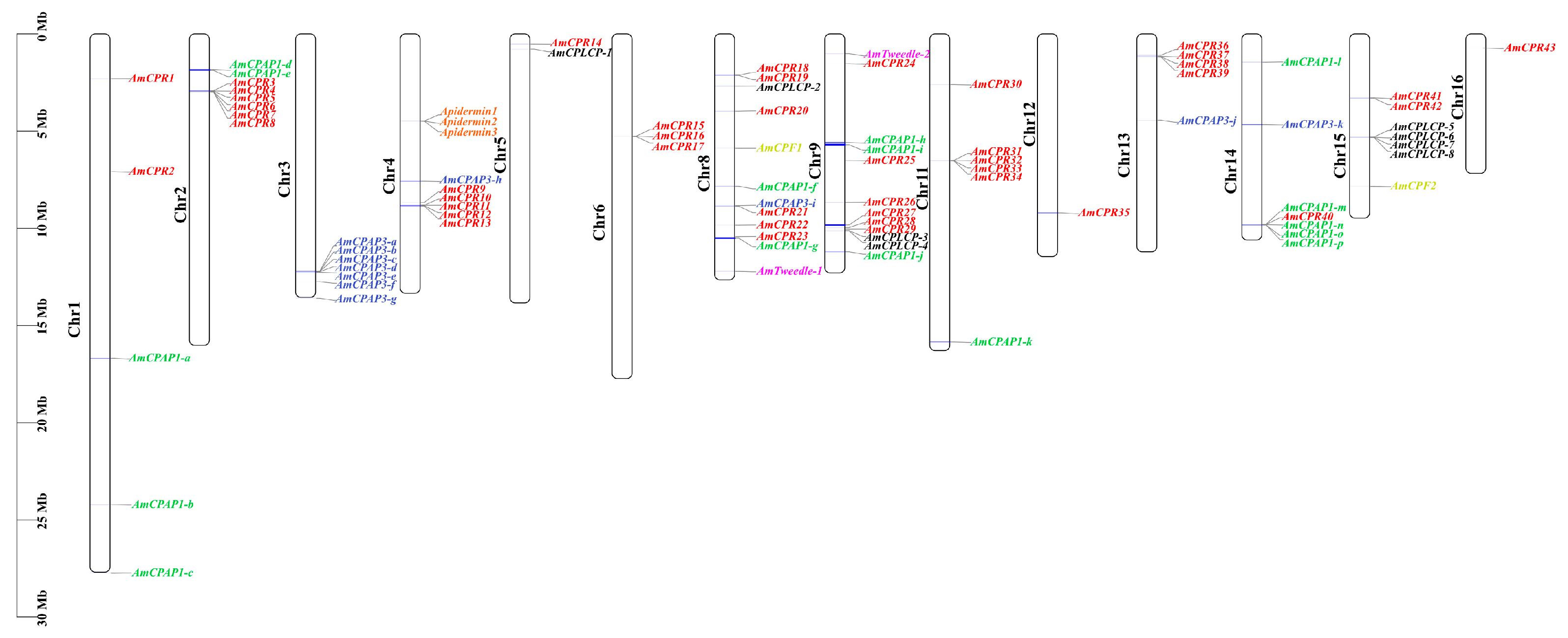 3.1. Identification and Chromosomal Localization of CP Genes in A. mellifera