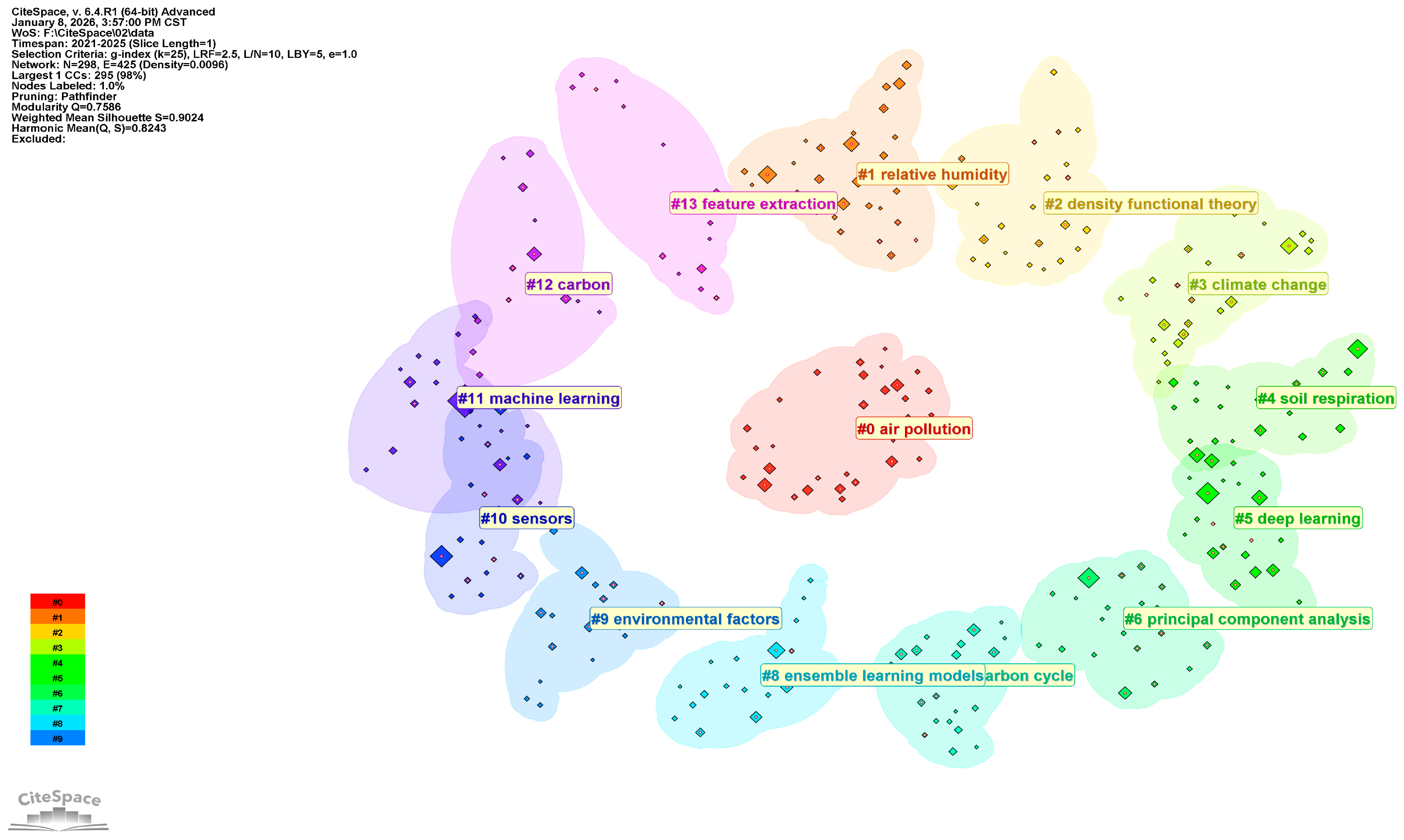 Clustering quality evaluation: As described in the original article, the keyword clustering results are quantitatively evaluated by the modularity value (Q value) and the average contour value (S value). When Q > 0.3, it shows that the network community structure is significant; when S > 0.5, it is thought that the clustering is reasonable, and S > 0.7 means that the clustering is convincing. The clustering results of this study meet these criteria, confirming the validity of the analysis [