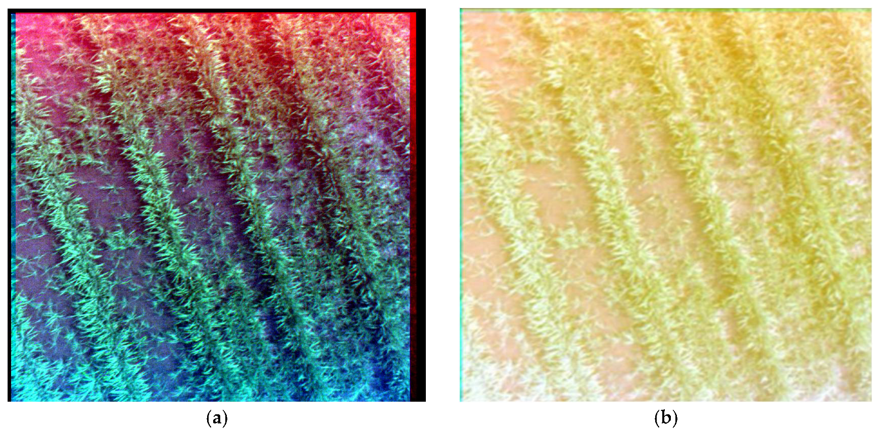 - Honkavaara, E.; Saari, H.; Kaivosoja, J.; Pölönen, I.; Hakala, T.; Litkey, P.; Mäkynen, J.; Pesonen, L. Processing and assessment of spectrometric, stereoscopic imagery collected using a lightweight UAV spectral camera for precision agriculture. Remote Sens. 2013, 5, 5006–5039. [Google Scholar] [CrossRef]