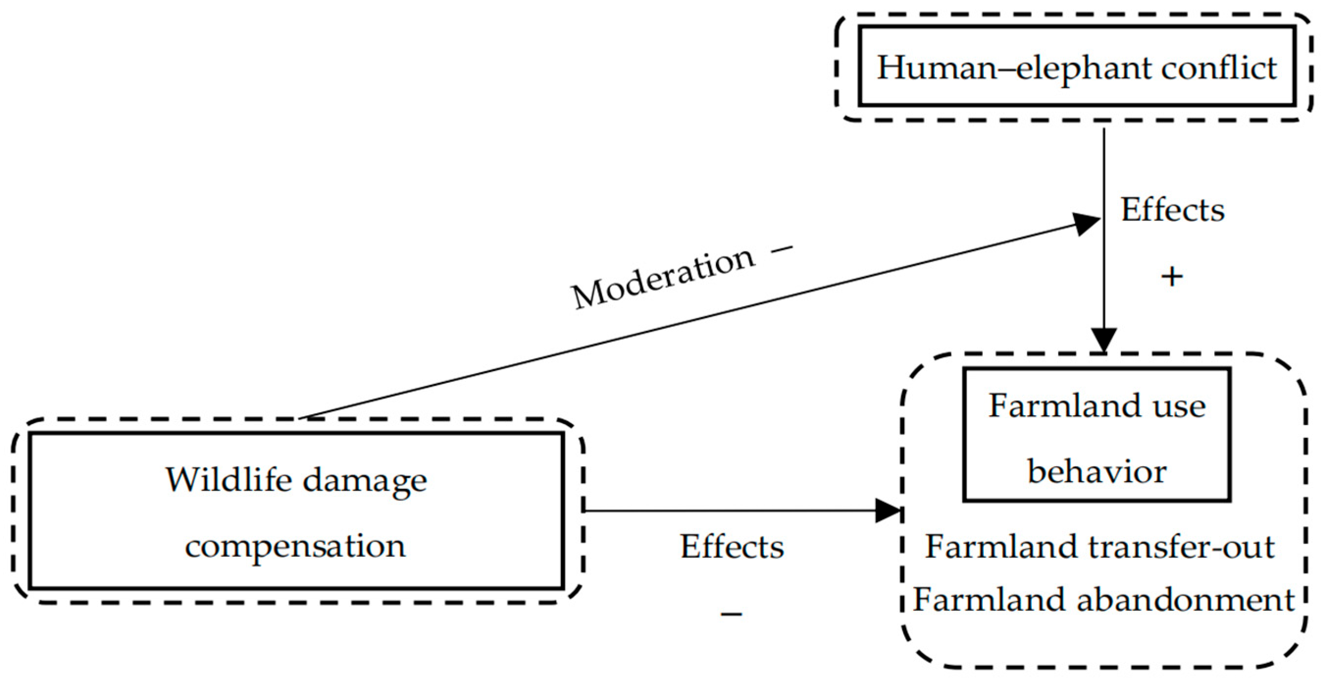 - Liang, X.; Chen, T.; Xiao, H.; Xie, Y. The Impact of Human-Elephant Conflicts on Farm Households’ Land Lease Behavior: The Case of Yunnan Province, China. Land Use Policy 2025, 153, 107532. [Google Scholar] [CrossRef]