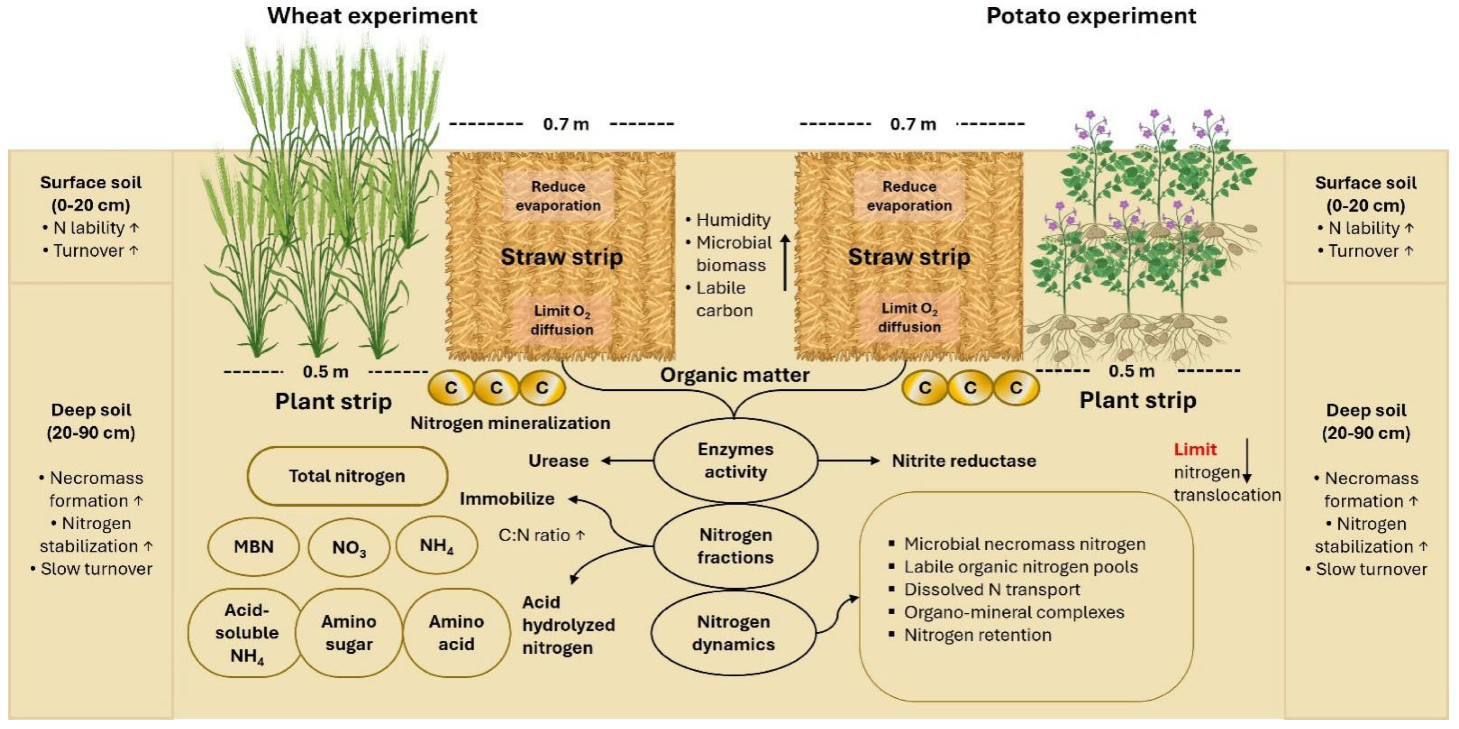 APA StylePang, L., Xia, B., Girmanee, T. G., Mumtaz, M. Z., Hu, N., Wang, X., Wang, X., Zheng, H., & Lu, J. (2026). Maize Straw Strip Mulching Mediated Transformation of Soil Organic Nitrogen Across Soil Depths in Wheat and Potato Cultivation. Agriculture, 16(6), 674. https://doi.org/10.3390/agriculture16060674