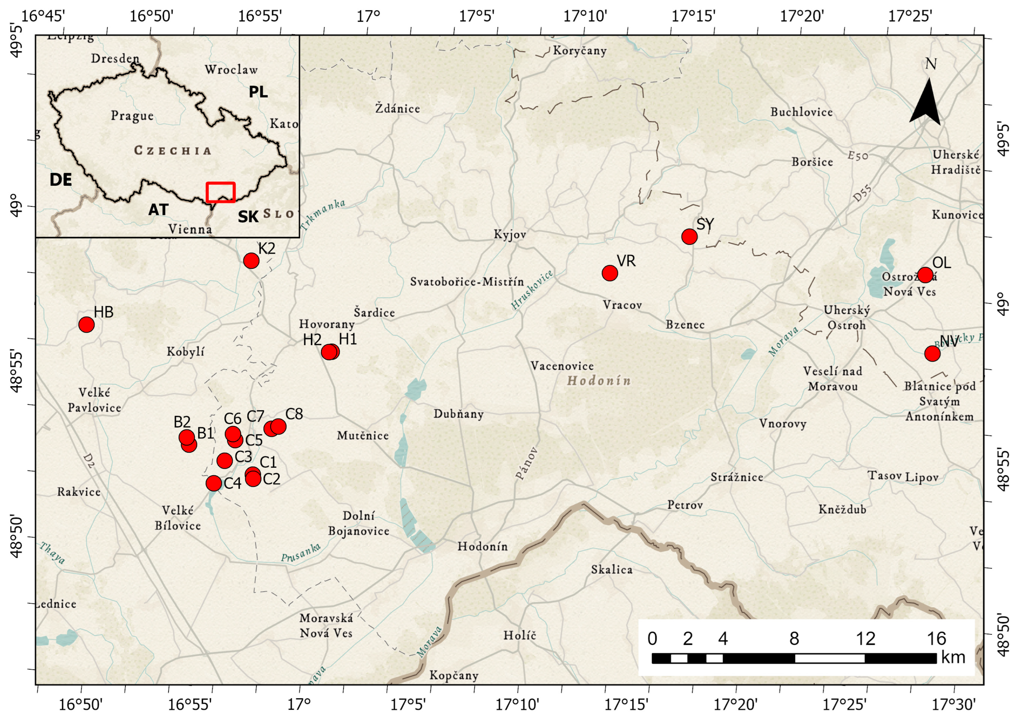 - Chlupáč, I.; Brzobohatý, R.; Kovanda, J.; Straník, Z. Geologická Minulost České Republiky (Geological History of the Czech Republic); Academia: Prague, Czech Republic, 2002. [Google Scholar]