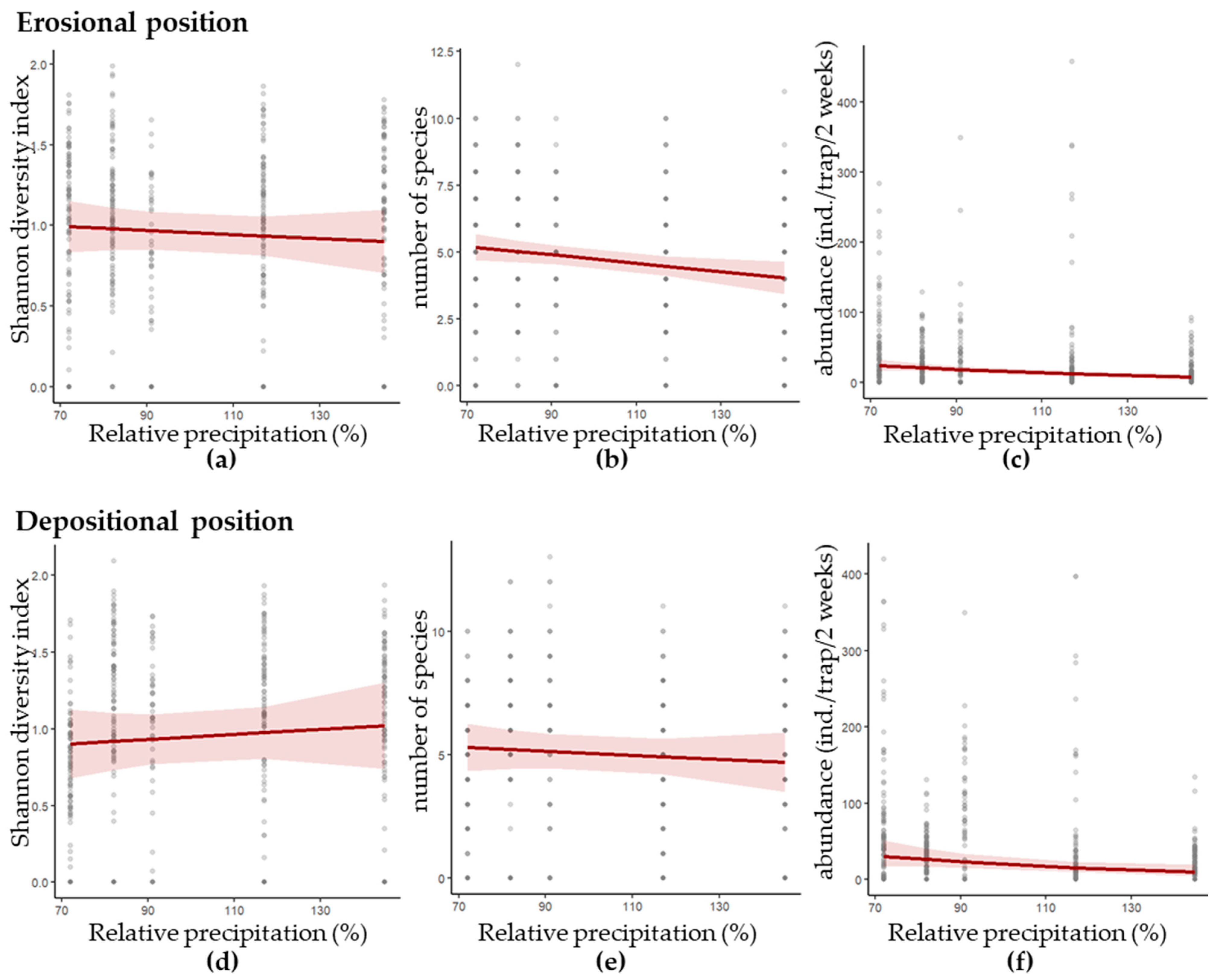 3.2. Influence of Precipitation and Annual Variability on Community Parameters