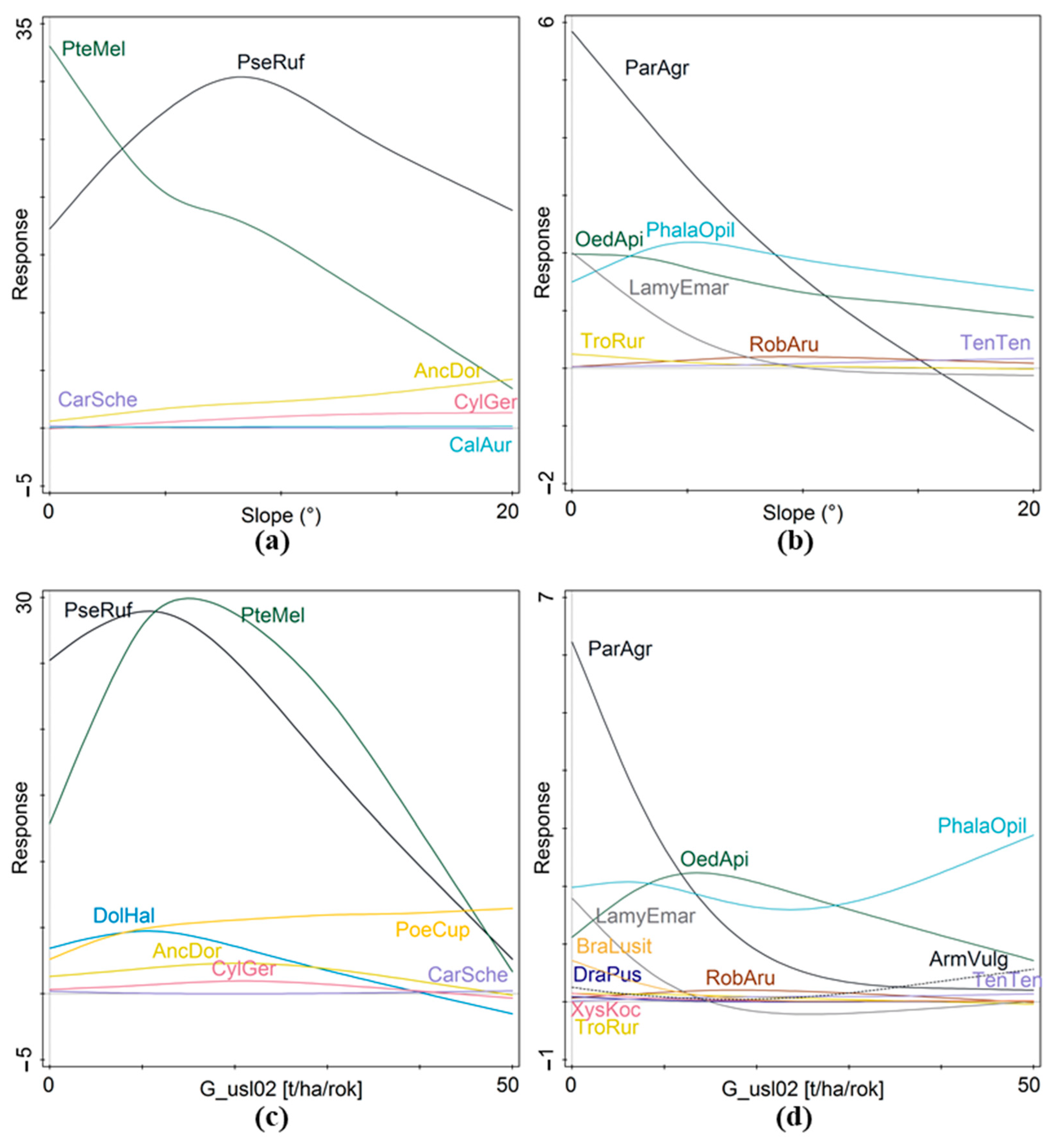3.5. Relationships Between Environmental Factors and Species-Specific Responses