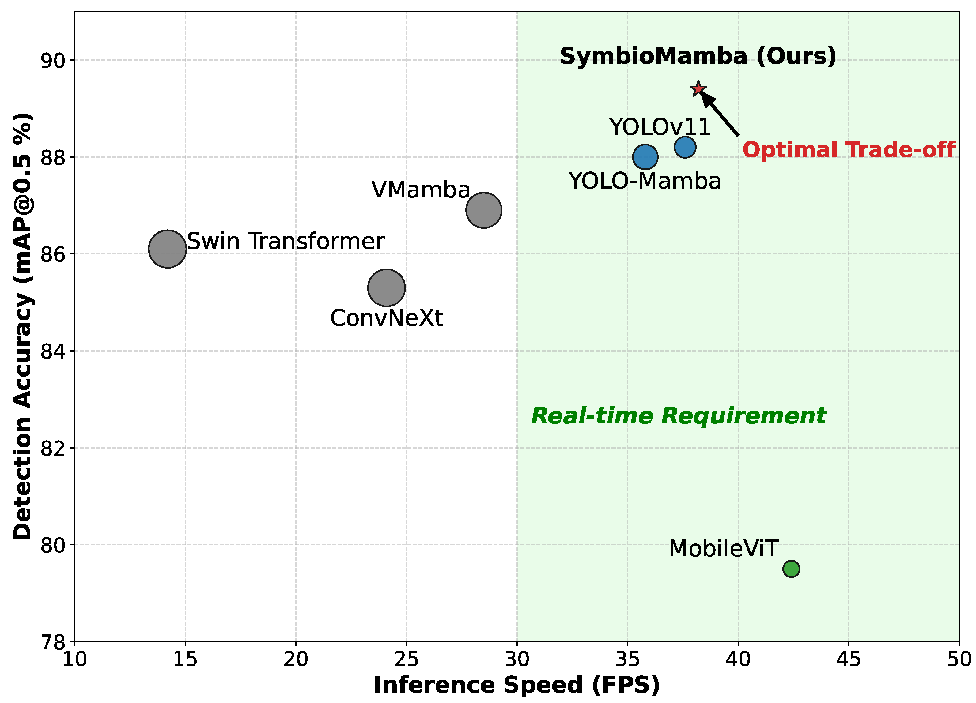 - Frames per second (FPS): the actual inference speed measured on the target hardware, where FPS is considered to satisfy real-time performance requirements.