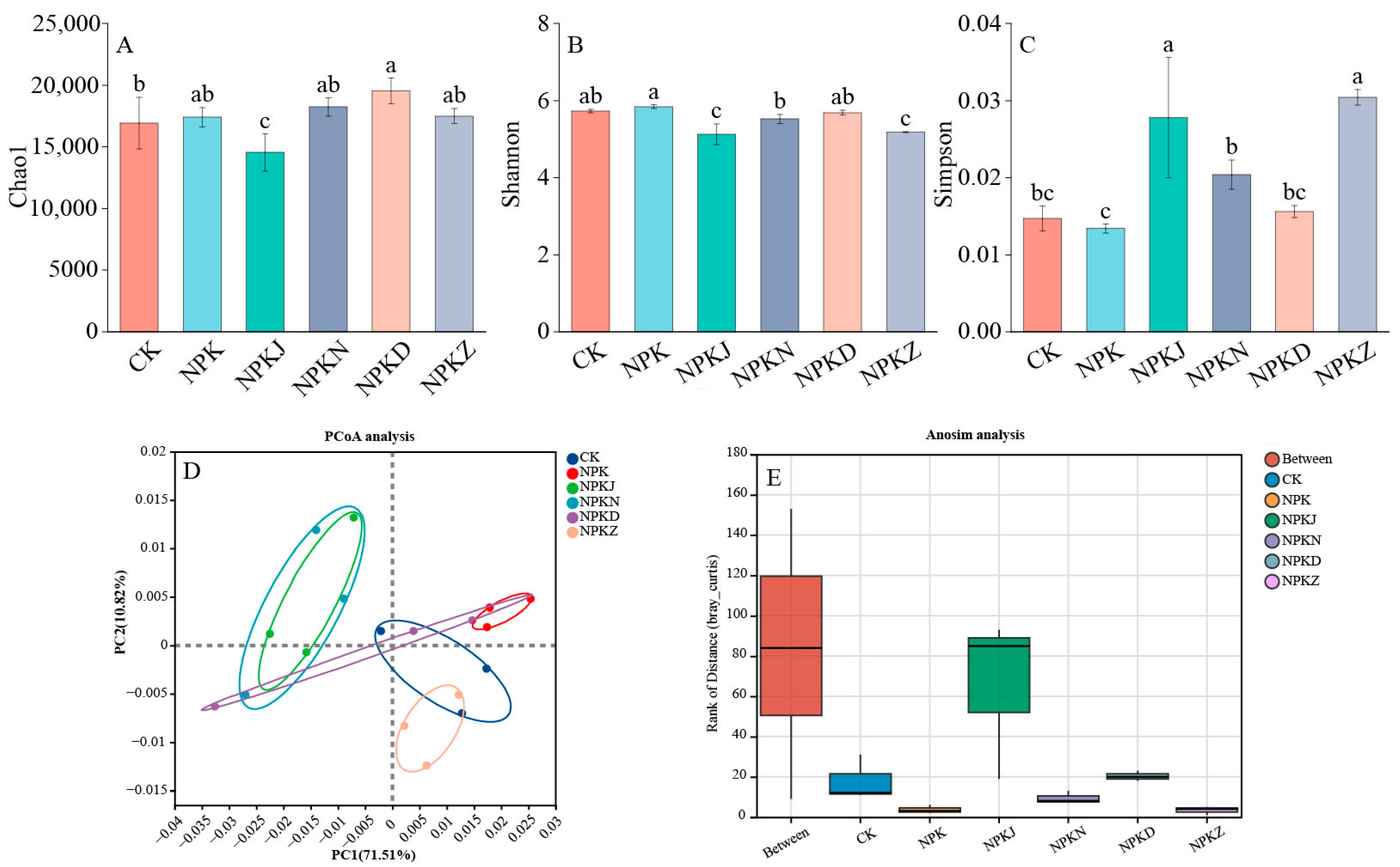 3.3. Microbial Community Structure in Soils After Long-Term Fertilization