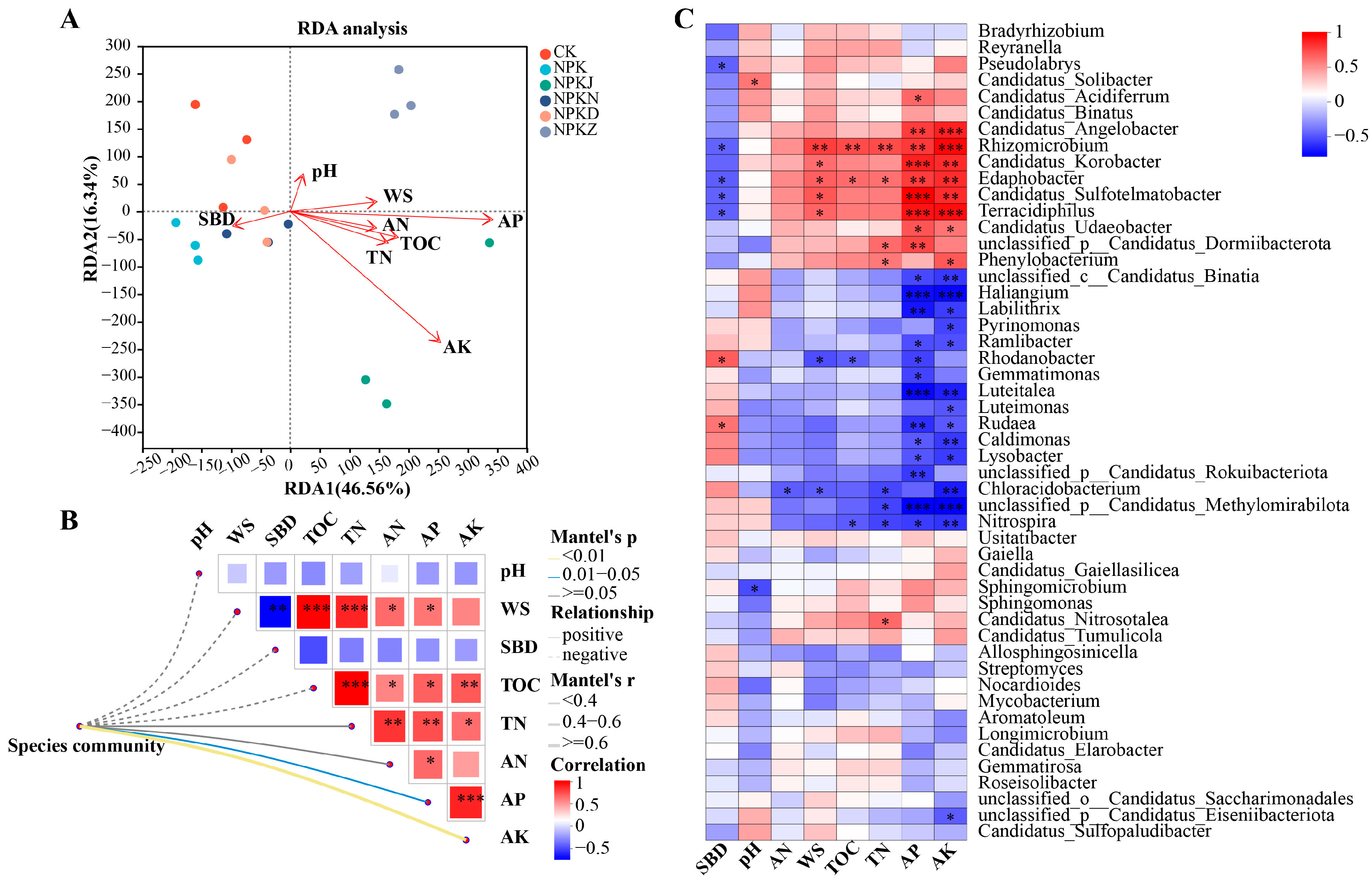 3.5. Linkages Between Soil Properties and Microbial Communities