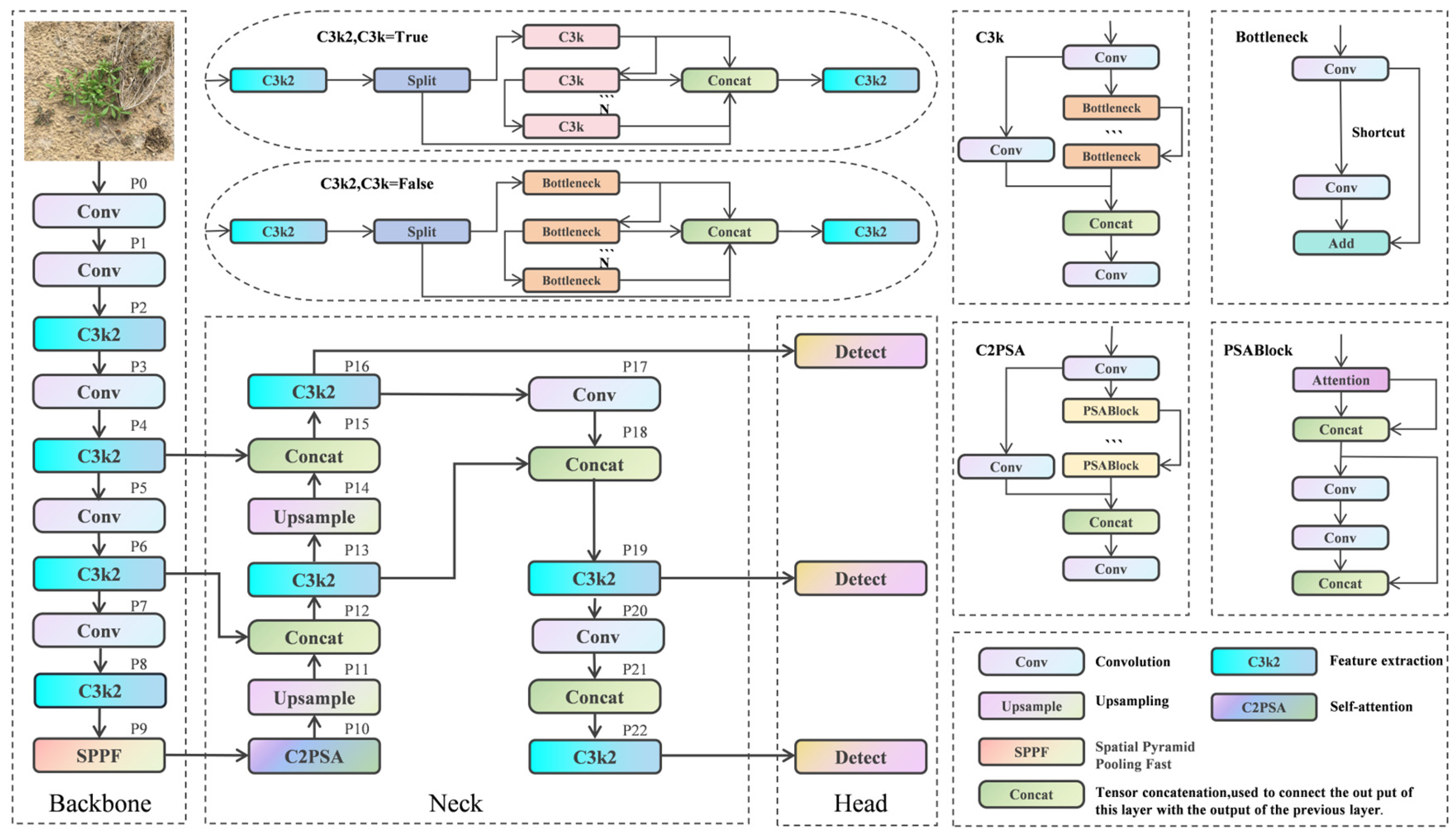 30] developed an enhanced YOLOv11m model for defect detection in high-speed rail overhead contact systems; yet, this model is optimized for infrastructure inspection rather than detecting small agricultural targets, such as weeds or lesions. He et al. [