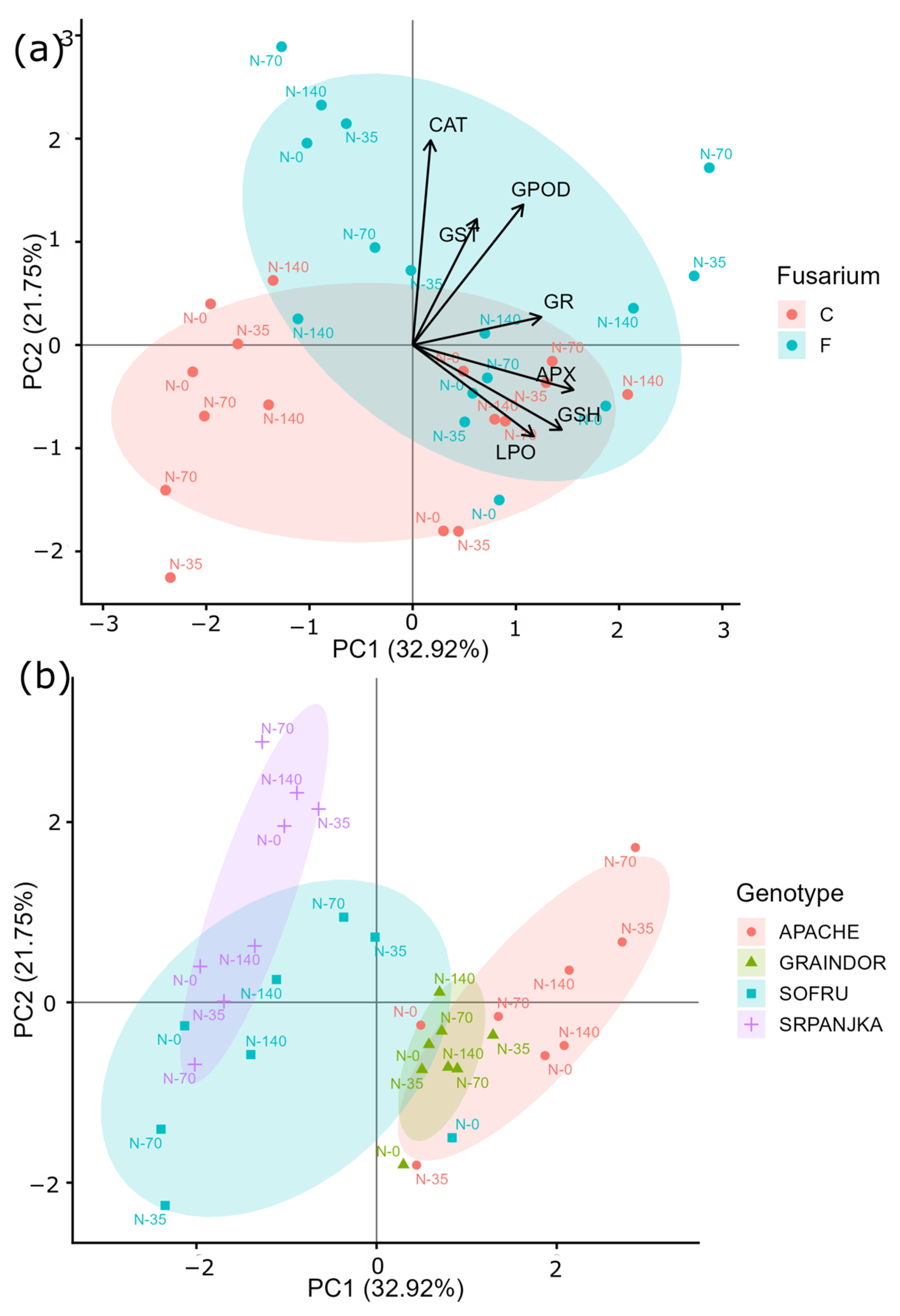 APA StyleVuković, R., Vuković Popović, A., Matić, M., Vrandečić, K., Štolfa Čamagajevac, I., Ćosić, J., Horvatović, M., Dvojković, K., & Novoselović, D. (2026). Seasonal and Genotypic Variability in Wheat Antioxidant Response to Fusarium Infection Under Different Nitrogen Treatments. Agriculture, 16(8), 865. https://doi.org/10.3390/agriculture16080865