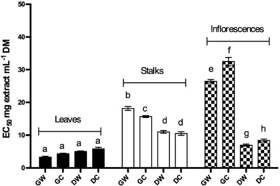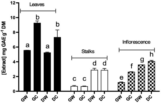 | Inflorescences | Dry | Cultivated | 4.06 ± 0.14 | 8.39 ± 0.45 | 11.15 ± 1.88 |