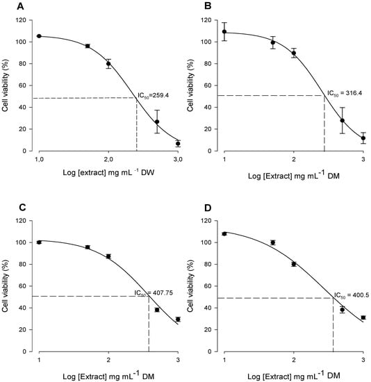 2.1.5. Effect of Cc Extracts in Tumor Cell Proliferation
