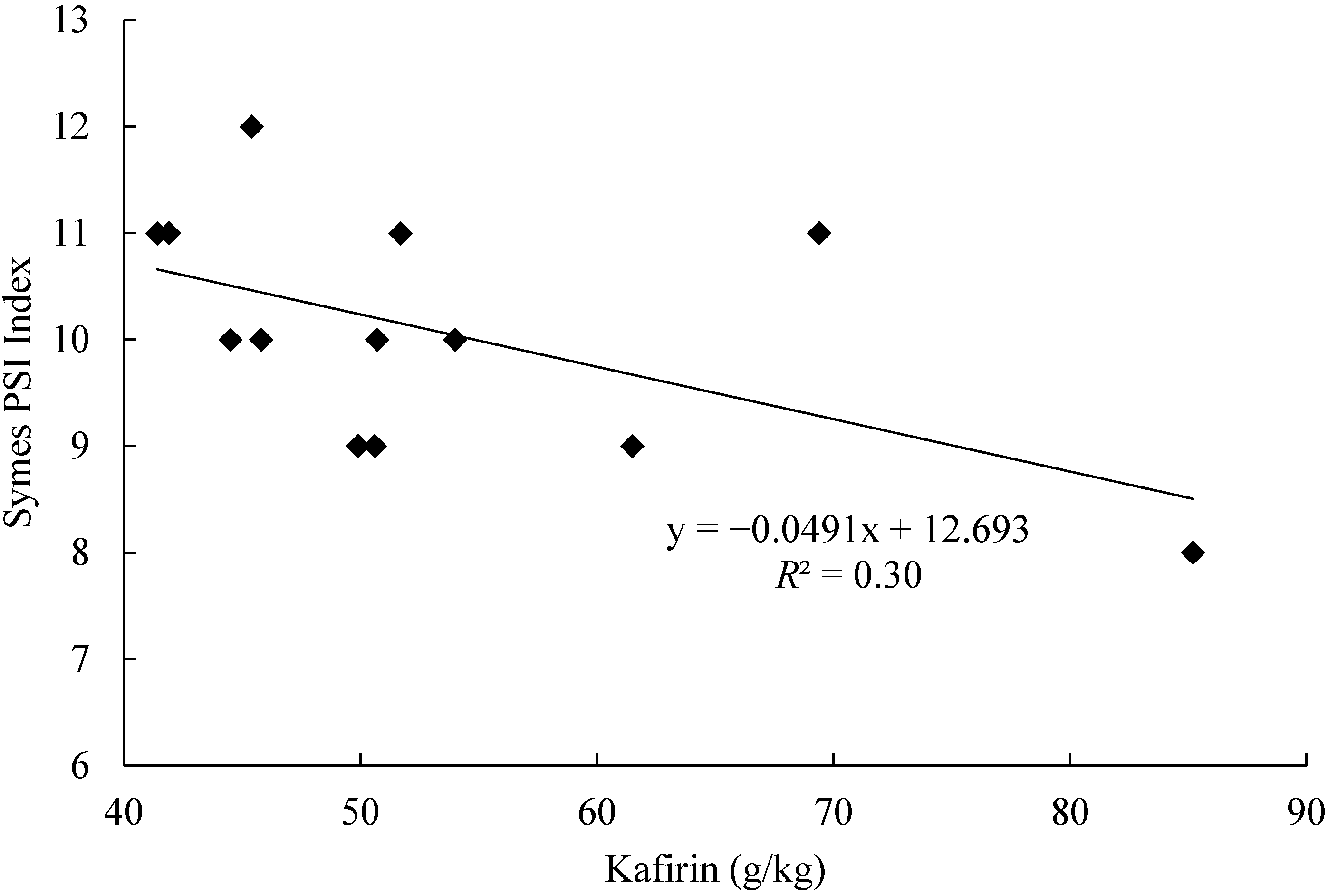 | Response | Observations (n =) | Experiment Leverage (p =) | Dietary Kafirin Leverage (p =) | Whole Model |