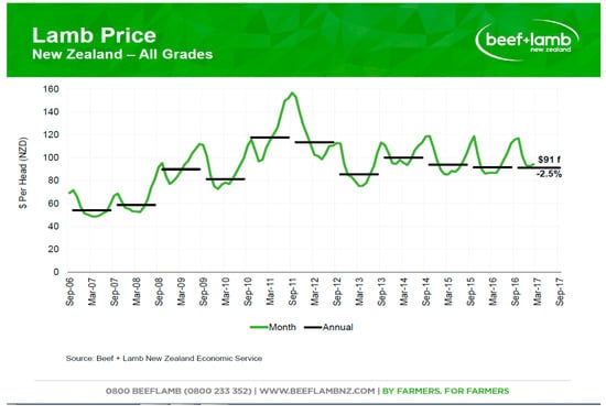 - Beef and Lamb New Zealand, Economic Service Sheep and Beef Farm Survey. Available online: http://www.beeflambnz.com/information/on-farm-data-and-industry-production/benchmarking-data/ (accessed on 3 May 2017).