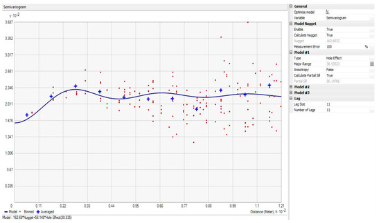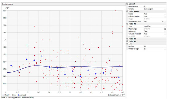 Trial 2, Section C (7.5–15 cm) variogram best fit—this was the best prediction model out of all six, with a root mean square of 2.9 and a prediction error of 1.4 µg/g.