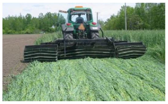 - Syndicat des Producteurs de Grains Biologiques du Québec. Plan Technique du Rouleau-Crêpeur. 2006; p. 23. Available online: https://www.mapaq.gouv.qc.ca/SiteCollectionDocuments/Regions/BasSaintLaurent/plantechniquerouleurcrepeur.pdf (accessed on 1 March 2017).