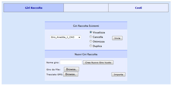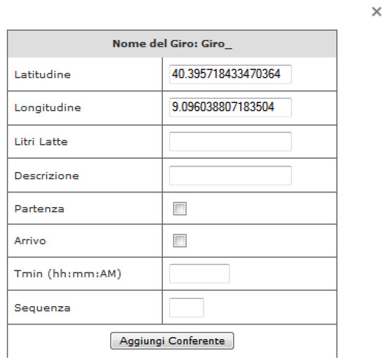 The client software for the integrated management of milk run used an Internet browser, in which the HTML code of the server was downloaded by means of a HyperText Transfer Protocol (HTTP) request. In Figure 1, the software interface is shown.