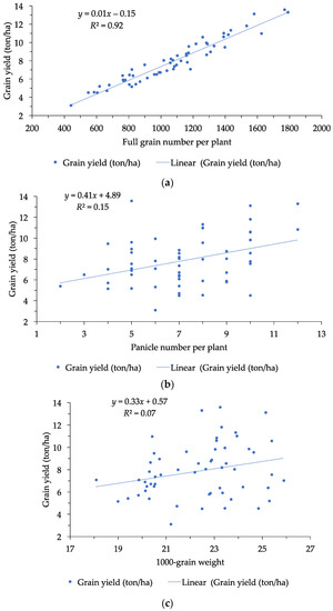 3.3. Correlation among Physico-Chemical Traits and Grain Yield