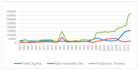 - FAOSTAT Data: Production. Crop. Available online: http://www.fao.org/faostat/en/#data/QC (accessed on 20 January 2019).